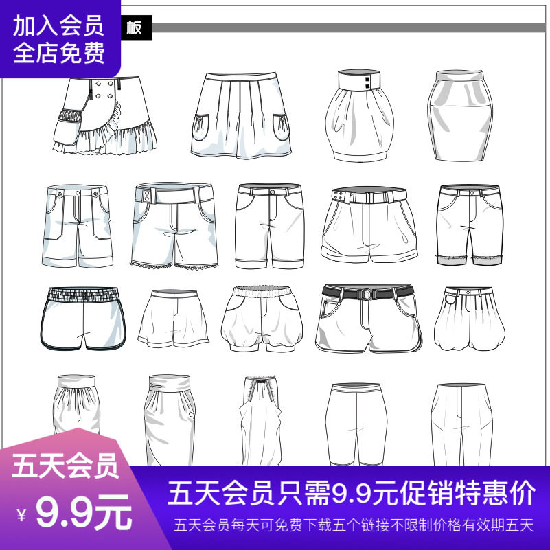 Женские шорты короткие юбки -диаграмма вектор может редактировать материал для дизайна женских брюк CDR.Формат файлов: количество файлов CDR: 2 (включая 1 -м JPG усадку), открыты версии CDRX4 и выше, подходящие для справочного дизайнерского дизайнерского дизайнера, векторный материал для дизайна женских штанов.