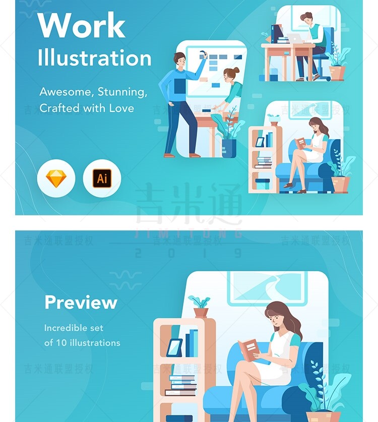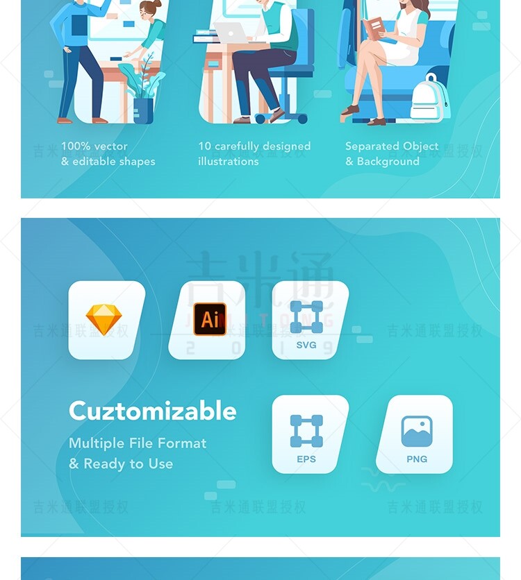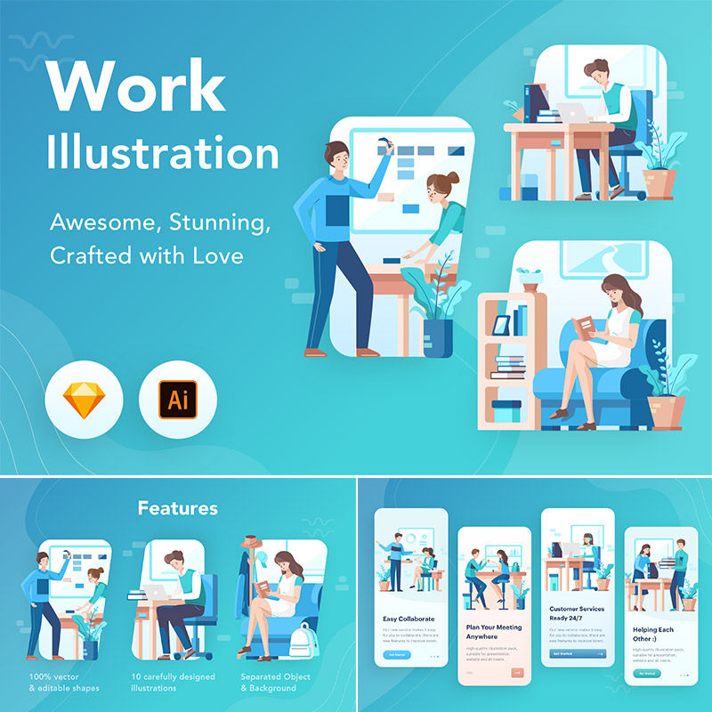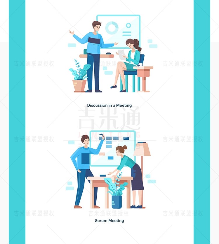 Веб -мобильный пользовательский интерфейс офис собрания работы с сцены сцены страница стартапа иллюстрация иллюстрация AI Vector Design Material Material