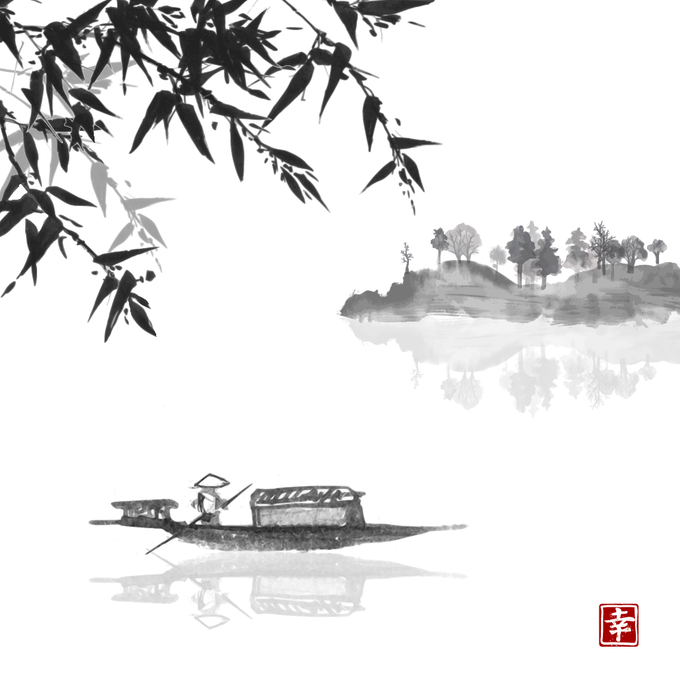 122 Китайские горы Фенгко и набережная судно чернила лодка маленькая лодка чернила