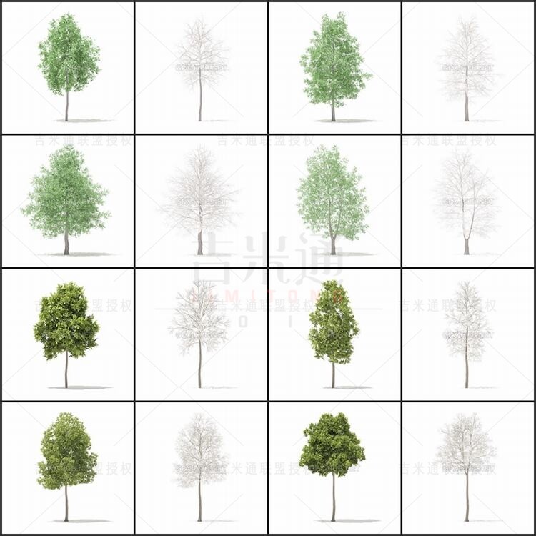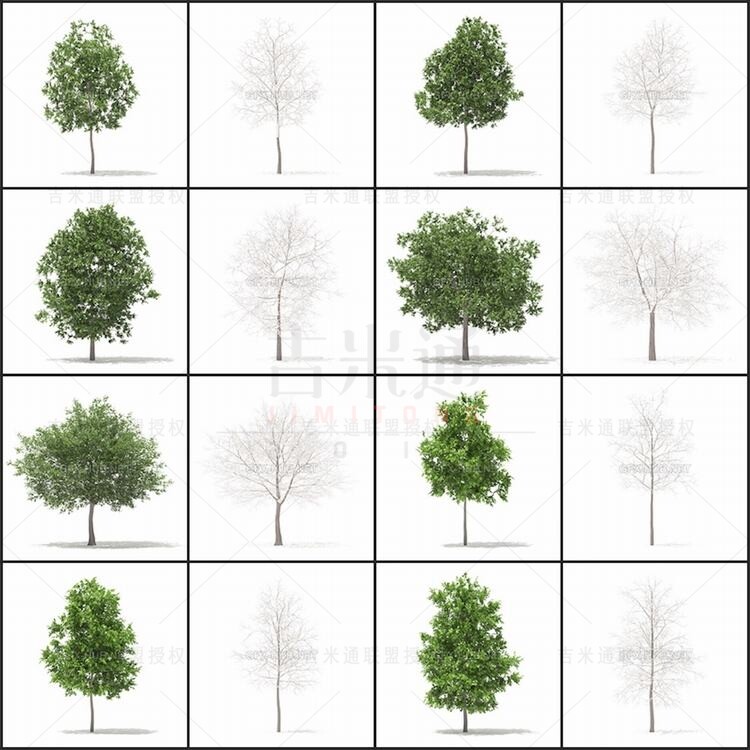 C4D MAX FBX OBJ 3D 54 Набор весенних и зимних деревьев и растений с графической трехмерной моделью_159