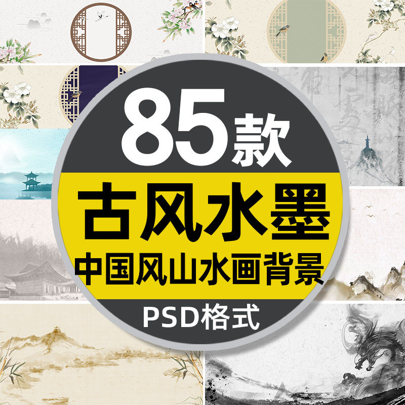 Китайский стиль китайский пейзаж живопись чернила живопись фона плакат Баннер Древний стиль ручка PSD Дизайн PS Материал
