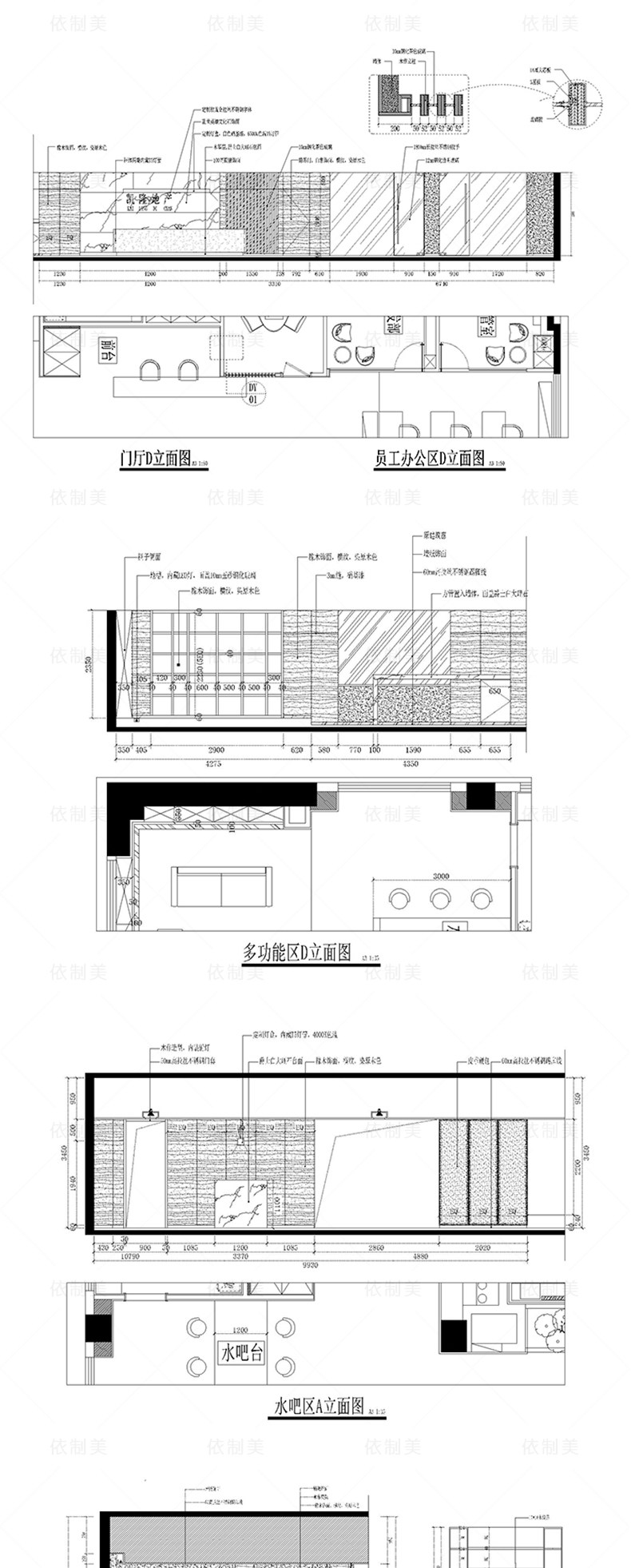 Сделайте покупки обратно в старый магазин офисного офиса офисного офиса Схема строительства CAD, галерея эффекта самолета дизайна интерьера с 3D -моделью