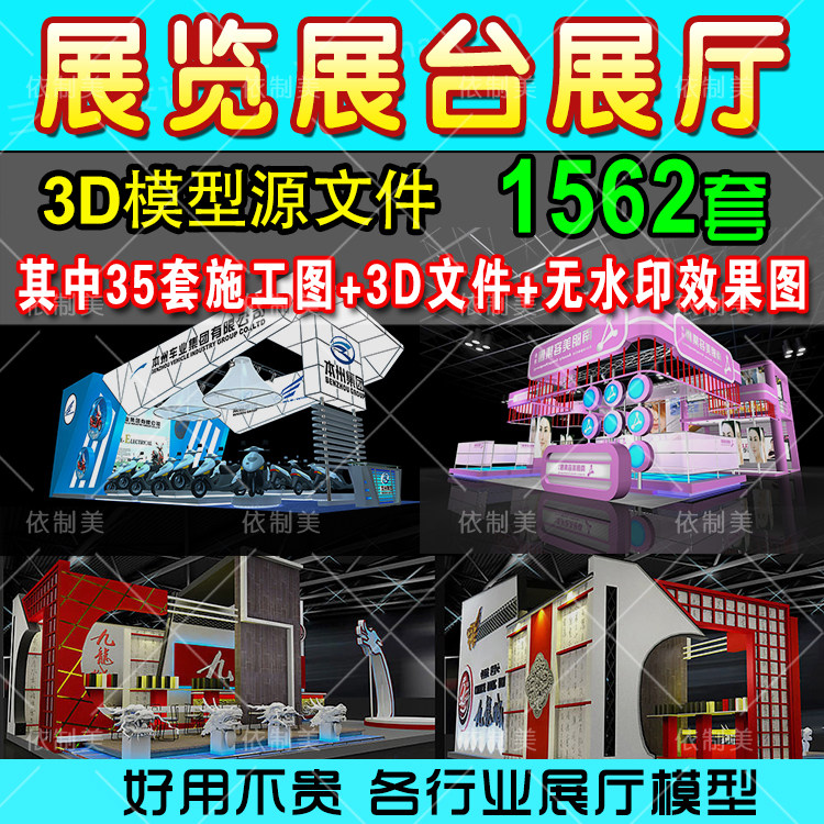 Выставка выставочного зала Дисплей Дизайн 3D модель поддержки CAD Construction Map 3Dmax Эффект Материал.