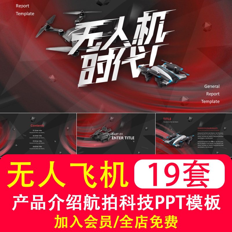 PPT -динамический шаблон с высоким уровнем технологии беспилотников PPT PPT Slide Film