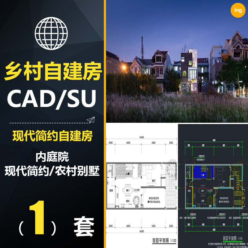 CCX066 Современный простой самодиральный дизайн дома CAD Drip модель модели изображение материал деревня Вилла III