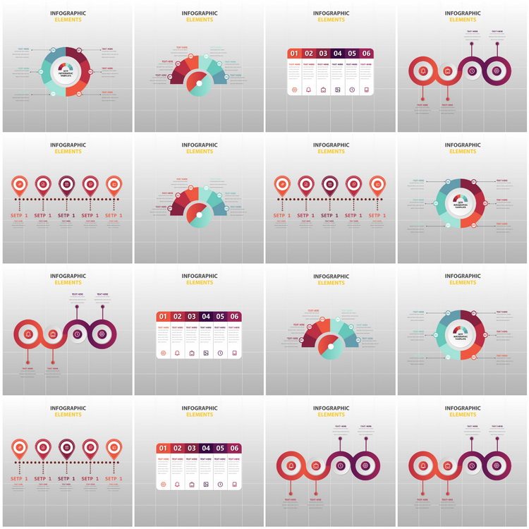 C633-15 Vector AI Design Material Flat Visual Infographic Timeline диаграмма EPS+Ppt