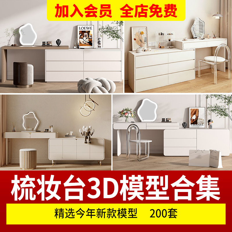 Современный и минималистичный туалетный столик, зеркало для документов, 3D