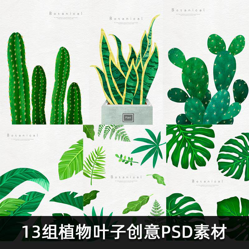 F606 Иностранные зеленые растения листовые скачки скачки скачки скачок зеленого растения Ципическая игла Свежий PSD Материал плаката PSD