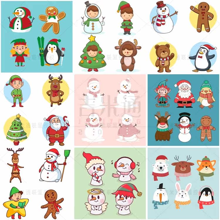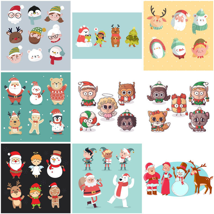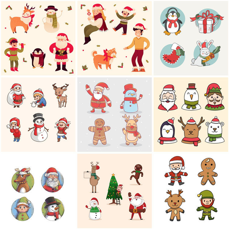 A1033 Рождественский персонаж Пряночный человек Санта -Санта -Санта -Пингвин Эпс Дизайн Материал Ай Вектор карта