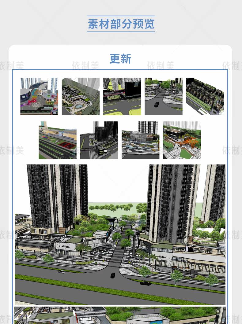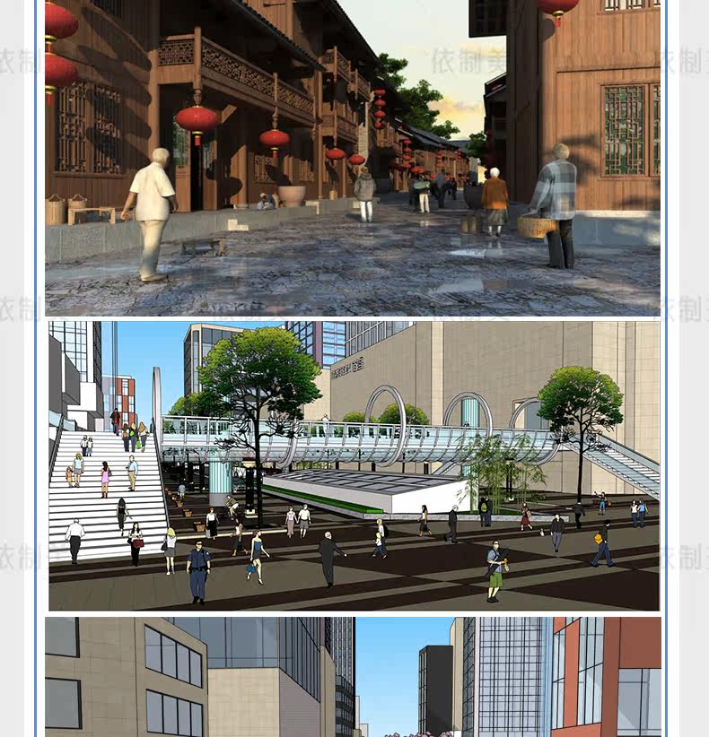 Супер полная коммерческая пешеходная улица SU модель французский классический китайский современный архитектурный дизайн эскизов магистр