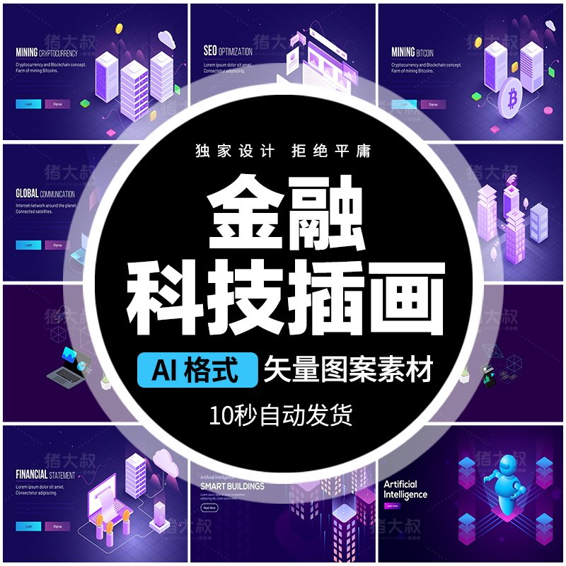 2,5D эквивалент Fintech Blockchain B Money Money Big Data Vector 3D Трехмерный материал дизайна иллюстрации
