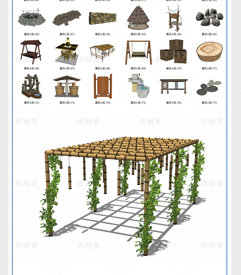 Сельская народная модель модельная коллекция материалов здание бамбуковое китайское украшение компонента компонента мастерства