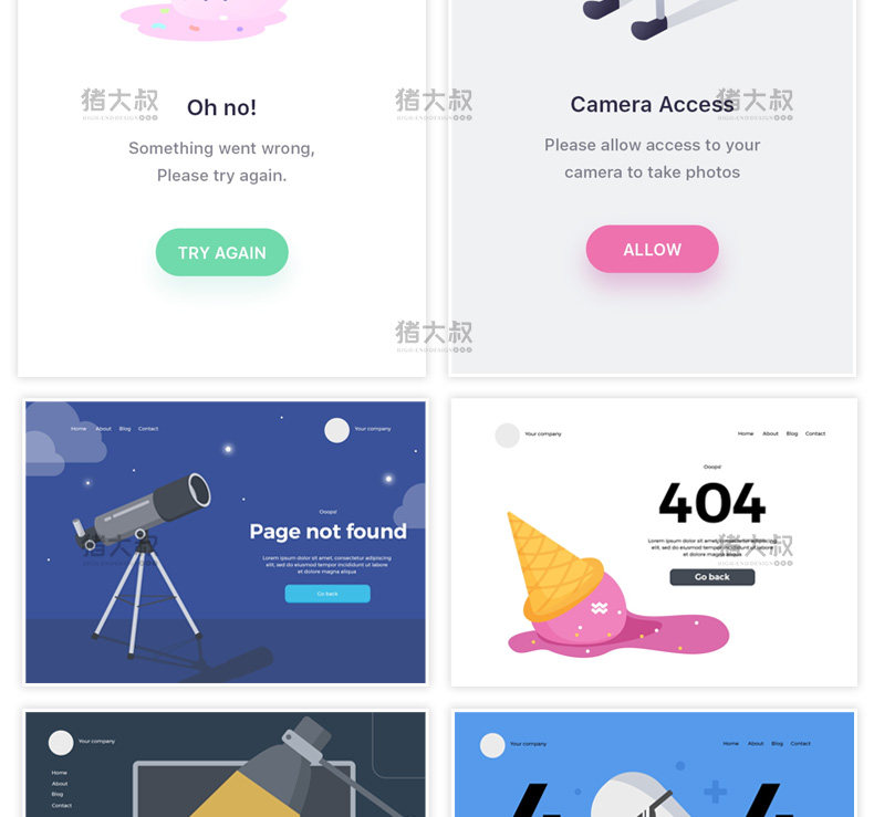Приложение веб -страница http ошибка по умолчанию страница 404 Интерфейс пользовательского интерфейса PSD Шаблон справочного материала PSD