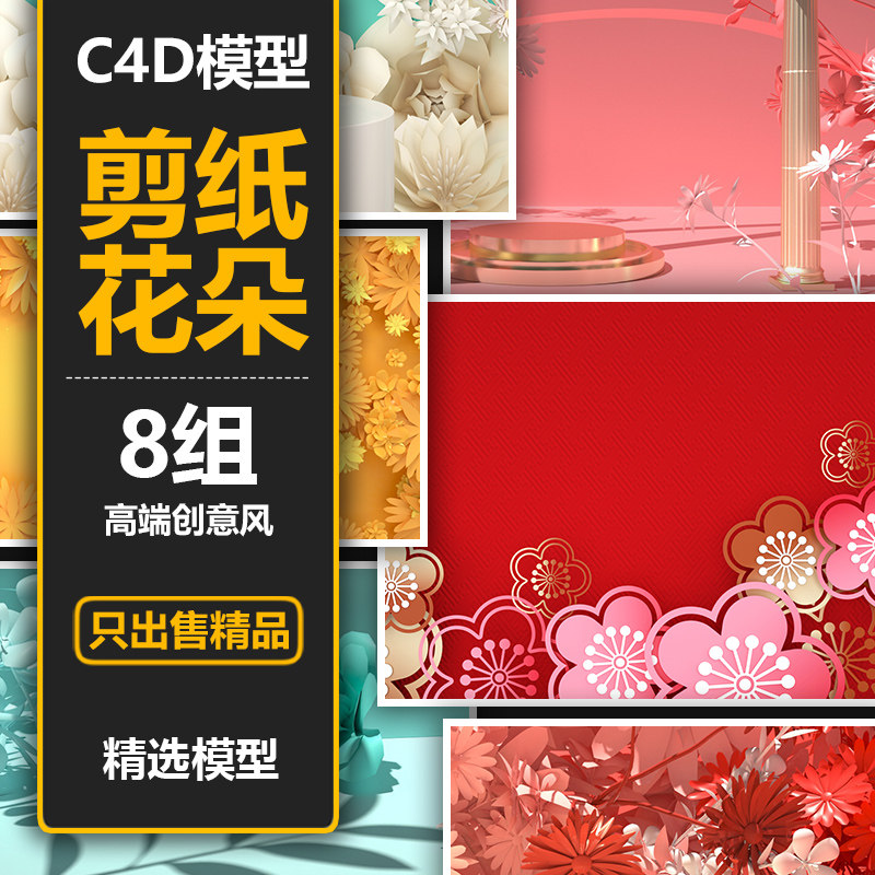 ISH059 Paper -cut Three -Dimensional Flower E -Commerce Booth Scene C4D Модель