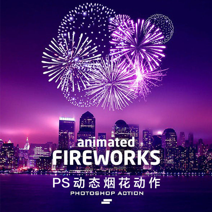 PS Dynamic Fireworks Действие используется для создания GIF -анимационных картин.