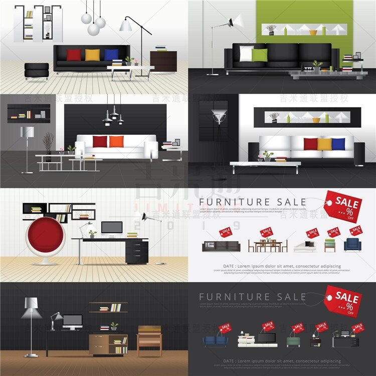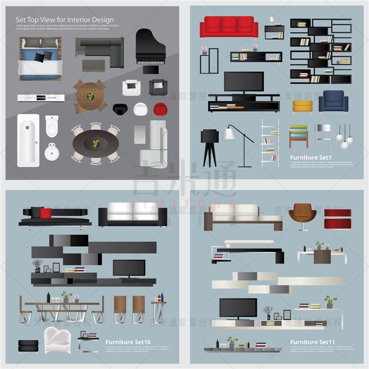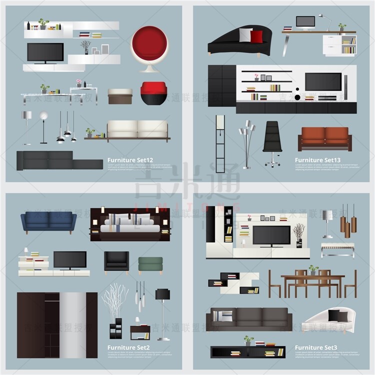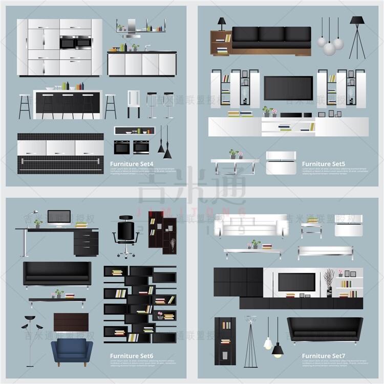 A0823 План мебели План План гостиной спальня с видом на столовую кухня ванная комната ванная эпс дизайн материал AI Vector иллюстрация