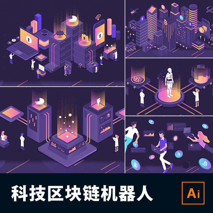Наука и технология Sense 2.5D Internet Financial Block City Logistic Logistics Security Robot Robot Vector Material