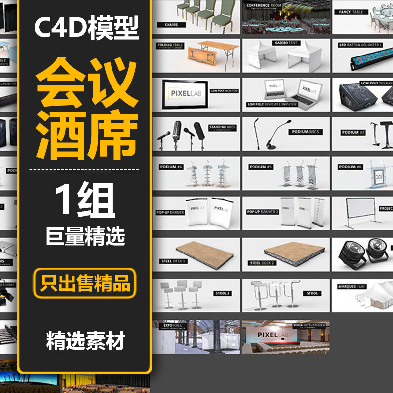 IWD182 Выставка сцены сиденья сцены, винный коврик лобби Mike Conference C4D модель предустановленная трехмерная трехмерная материал