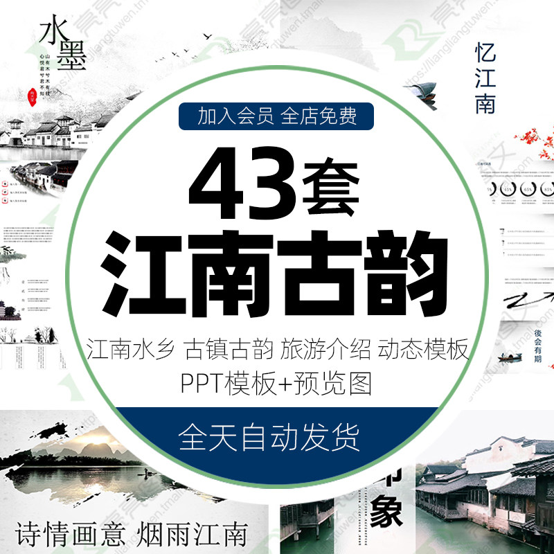 Jiangnan Water Town Древний город PPT Шаблон Шарм Туризм Введение Материал Вужэнь классическая архитектура впечатление PPT шаблон