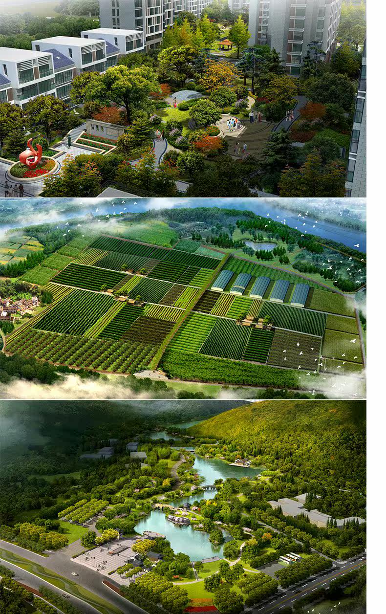 Вид птицы на пейзаж PS рендеринги, набережная, вид с птичьим гонкой на горное чайное садовое планирование.