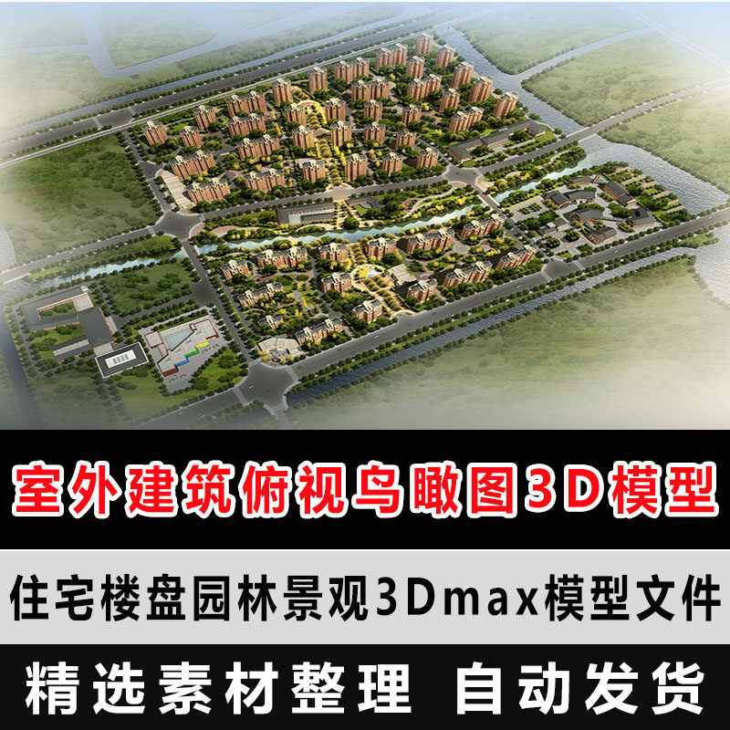 Сообщество на открытом воздухе с видом на птичий вид 3D -модель жилой недвижимости садовой ландшафт 3DMAX Source File