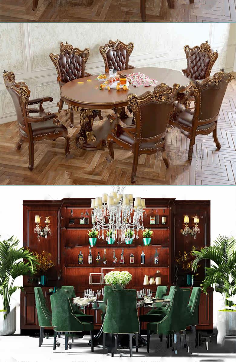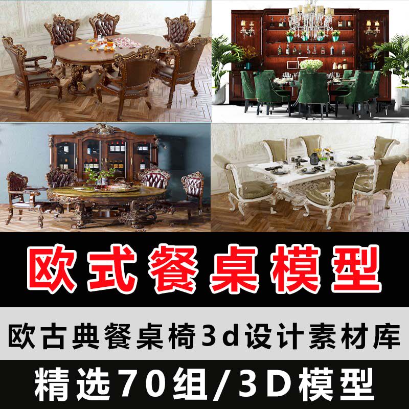 Европейская обеденная таблица 3DMAX Модель нового продукта бутик роскошный кожа простой европейский классический обеденный стол и стул 3D -дизайнерский библиотека