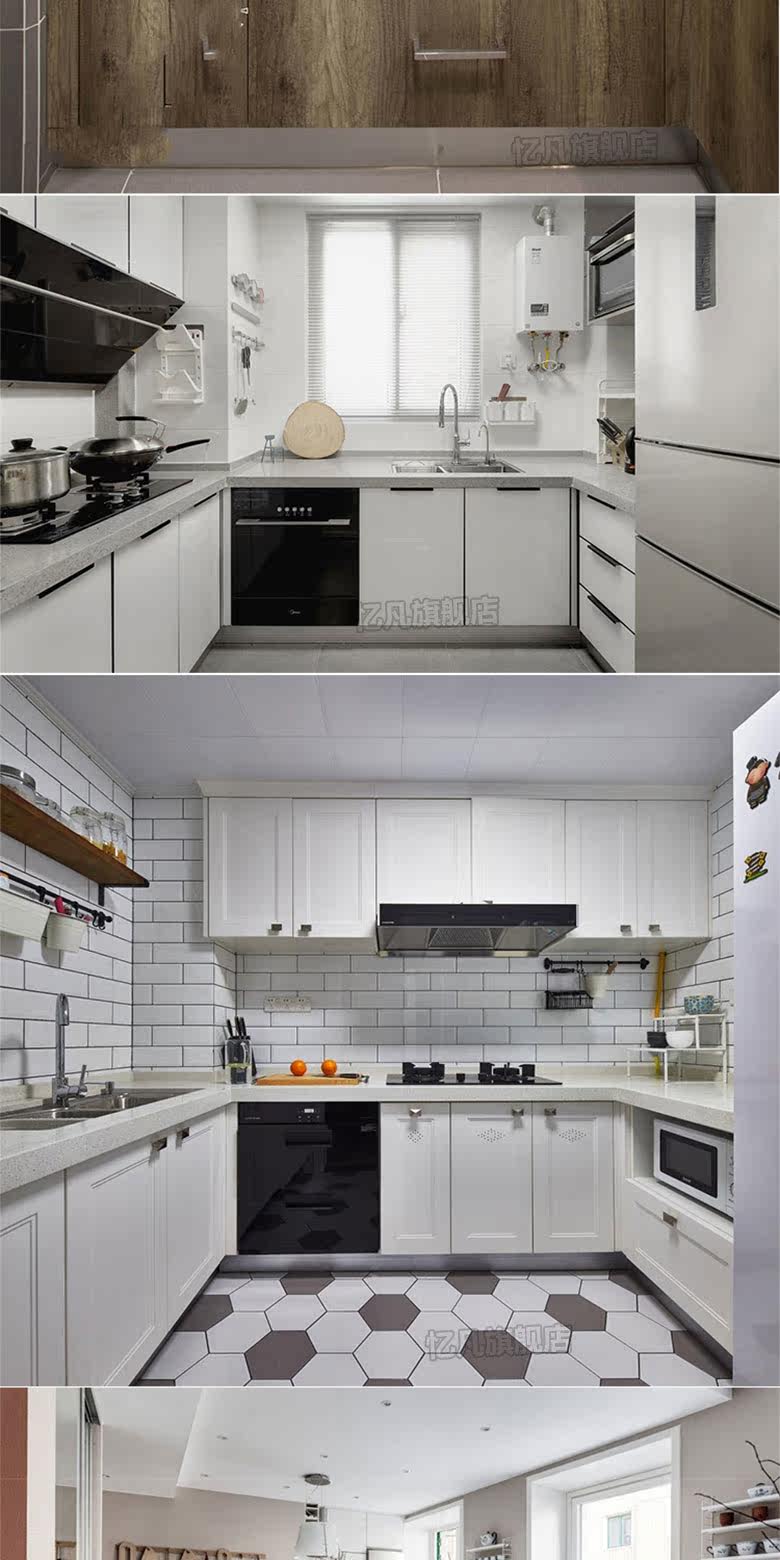 Дизайн кухни Рендеринг шкаф шкаф Nordic Минималистский современный открытый ресторан большой масштаб высокий дом