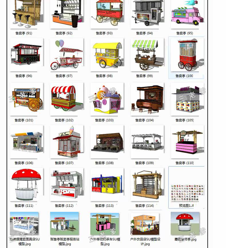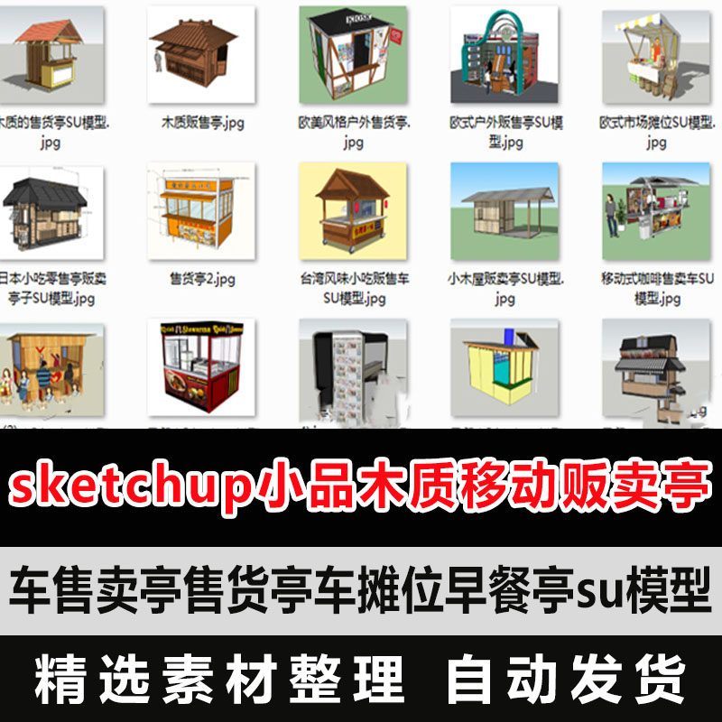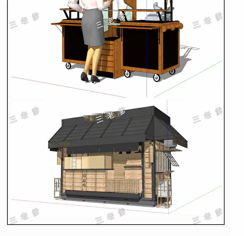 SketchUp Sketch деревянный мобильный павильон павильон продаж павильон павильон автомобильный кастрюль завтрак павильон SU модель