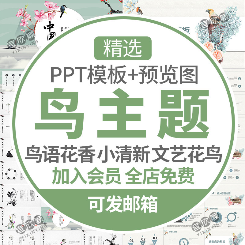 Китайская ветряная птица Слово цветок ароматная птица Тема PPT Шаблон маленькие свежие птицы сражаются с цветочной литературой и искусством WPS