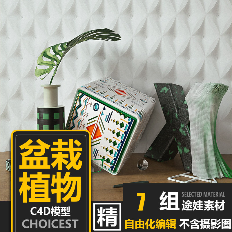 IWD105 Внутренние ремесленные сцены C4D модель модели для горшка и трава oc.