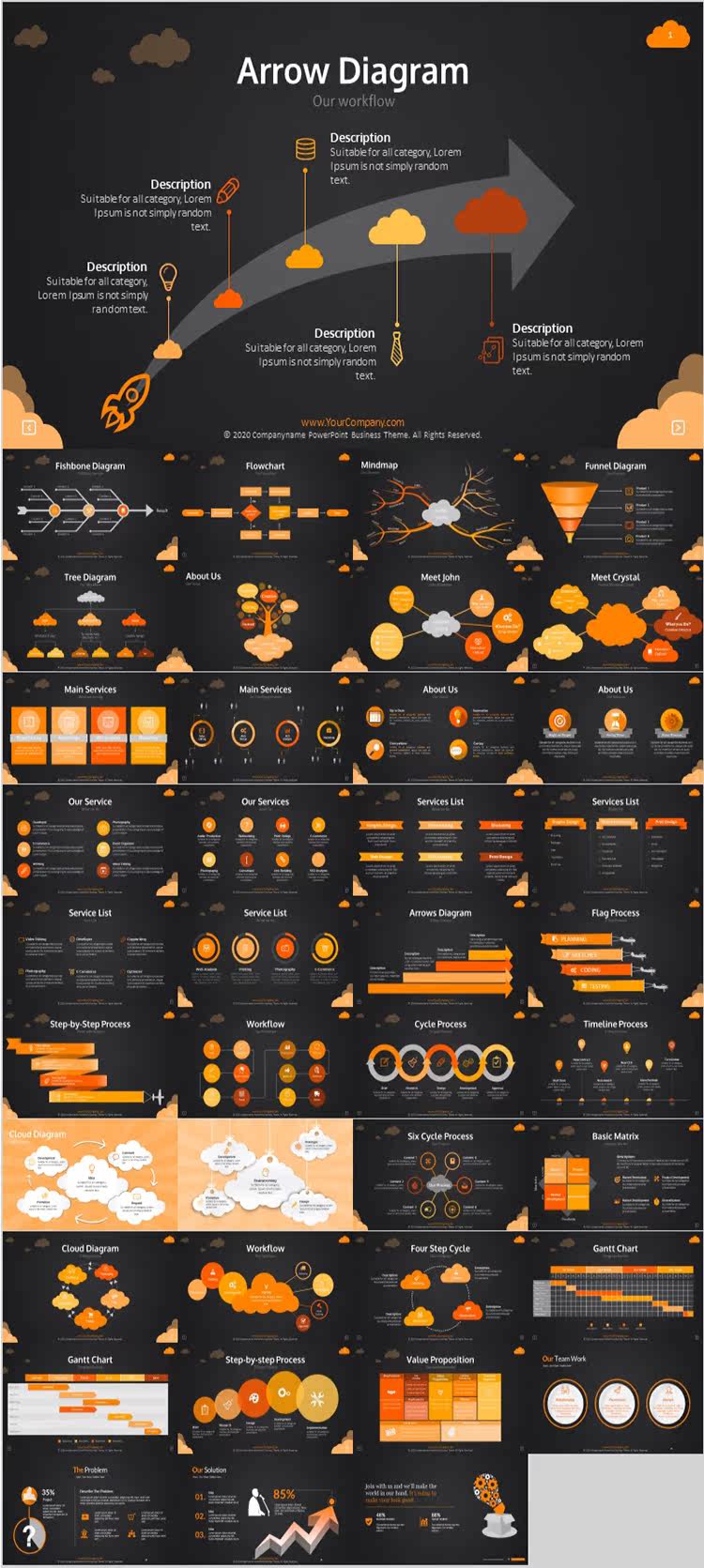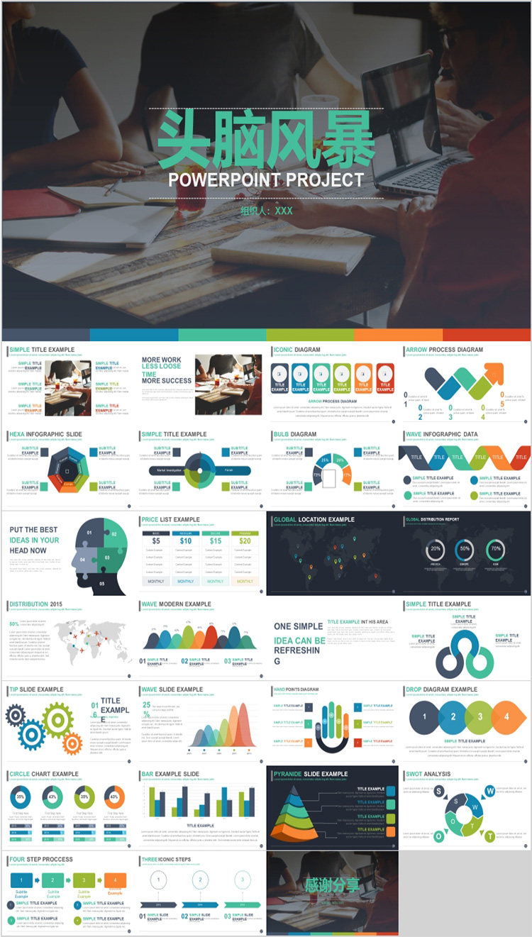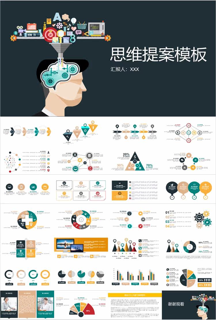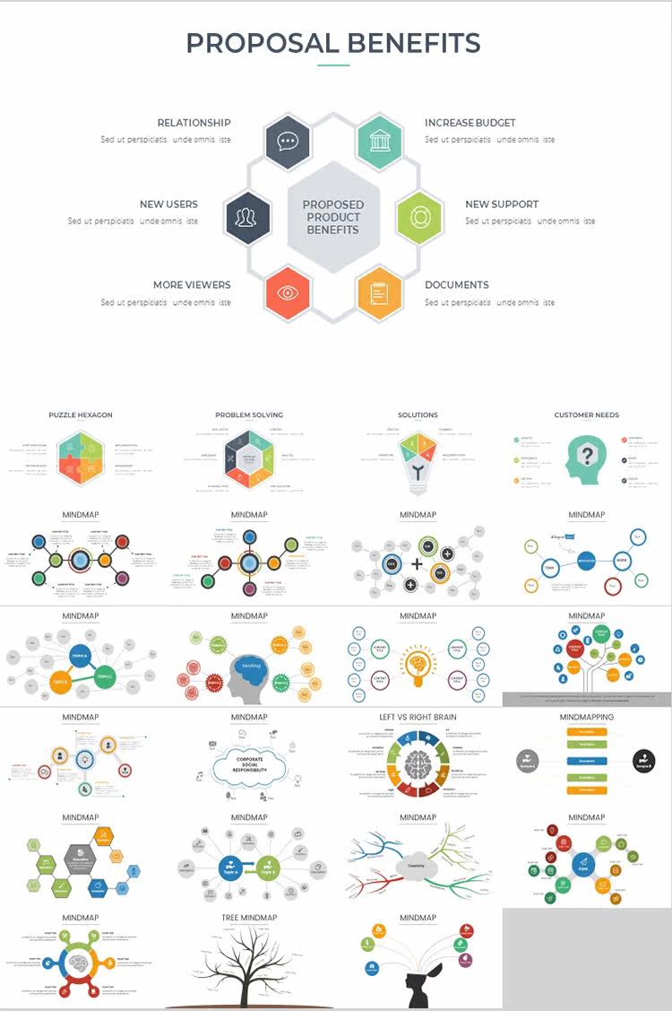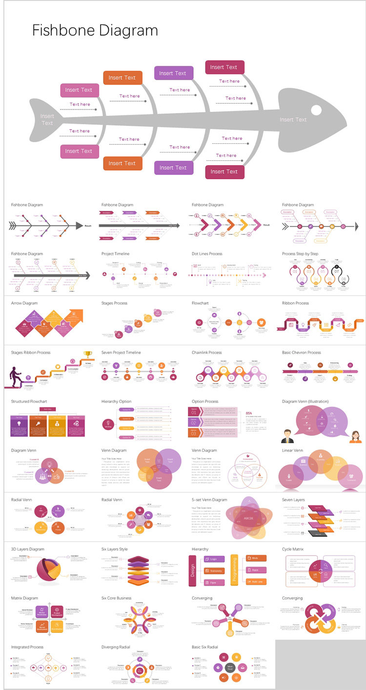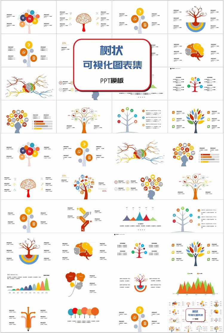 Карта мышления PPT Шаблон B2 Дерево дерева -визуальная диаграмма таблицы рыб