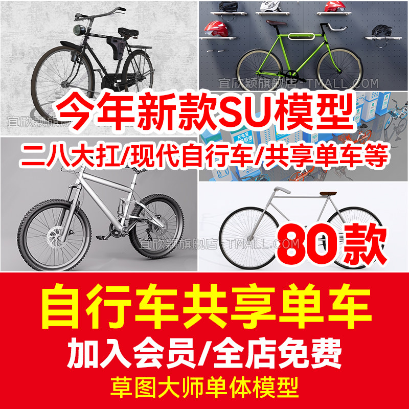 Велосипедная винтажная гора 28 28 Big Bar Retro Shared Bicycle Sketch Master Sketchup Model Su