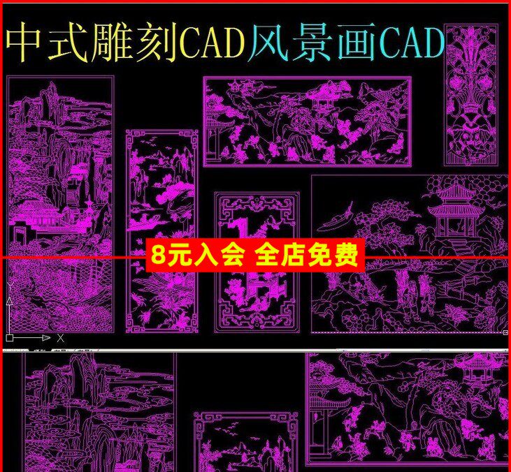 Классическая мебель китайского стиля, деревянная стена ухода на стене фон стены режущая рисунка пейзажная картина благодарное значение CAD Construction Bring