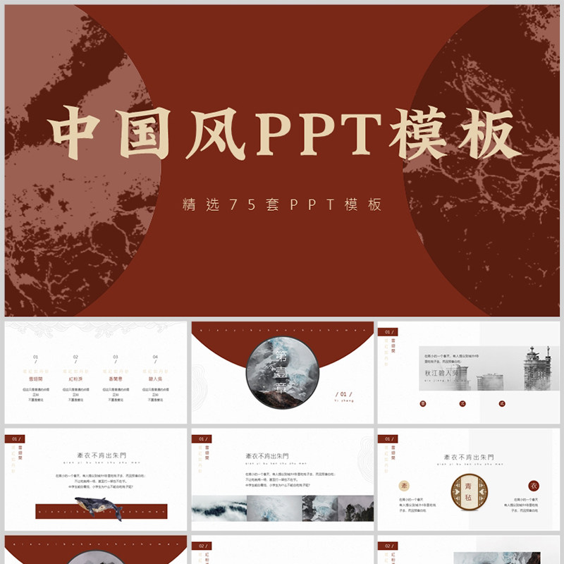 Шаблон PPT в китайском стиле с высокой динамикой простые национальные приливы