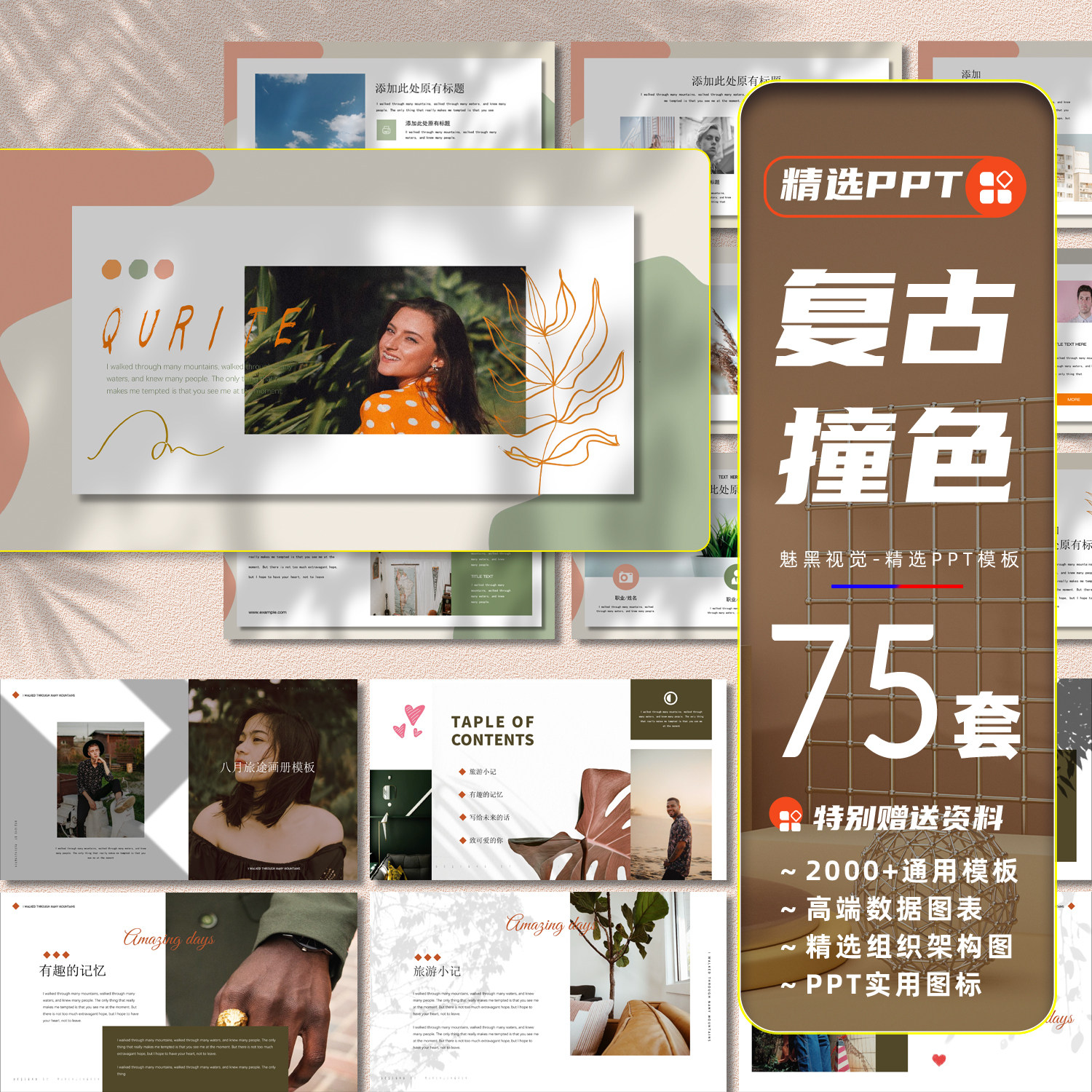 Шаблон PPT Ретро мода Контрастная цветная европейская и американская плана работы журнала сообщает о личной креативной самостоятельной курсовой программе
