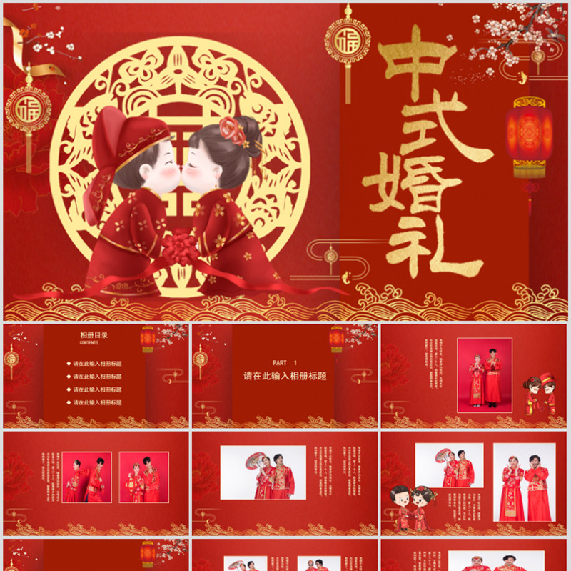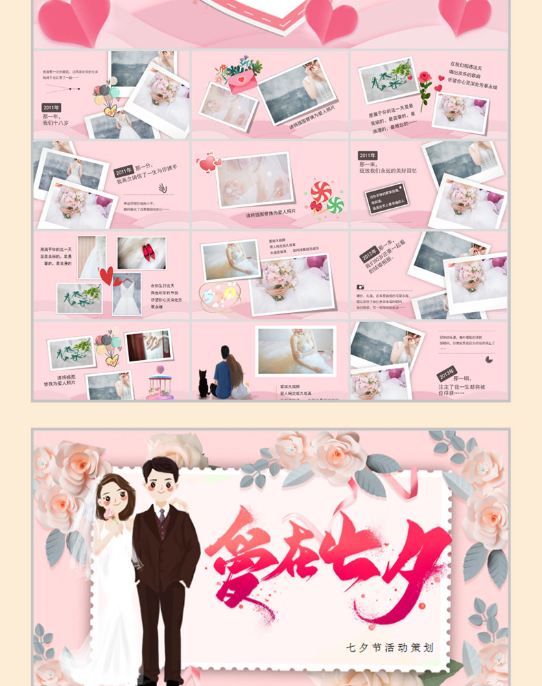 Свадебный альбом PPT шаблон сладкий китайский танабата День святого Валентина Планирование литературного и романтического свадебного альбома