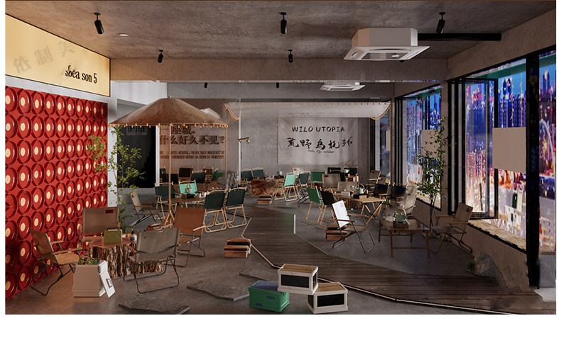 Sketch Master Net Red Camping Style Style Stomato Theme Restaurant Bar Bare Barbecue Restaurant Cafe Cafe Модель