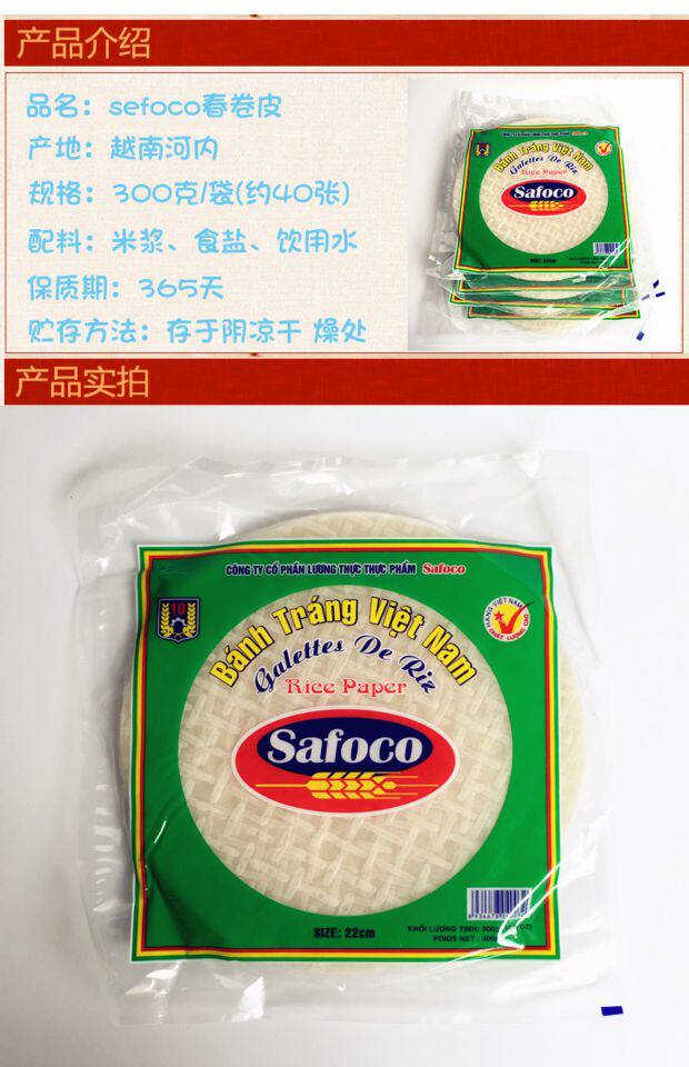 Вьетнам импортированная Safoco Spring Roll Skin 300G Специализированный рисовый пирог кожа 22 см. Машина клейкая рисовая бумага для пирога с пирогом