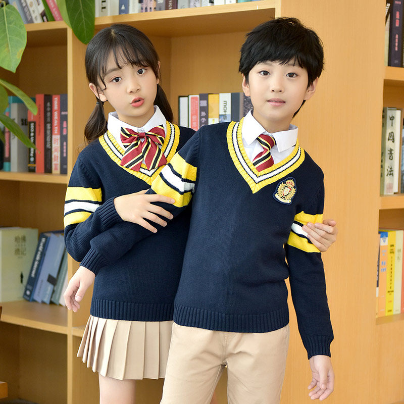 Осенний демисезонный трикотажный свитер подходит для мужчин и женщин для школьников, форма для детского сада, детская одежда