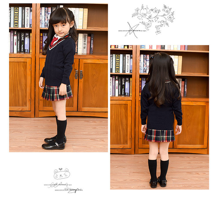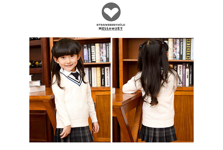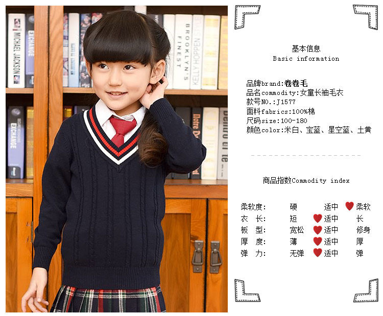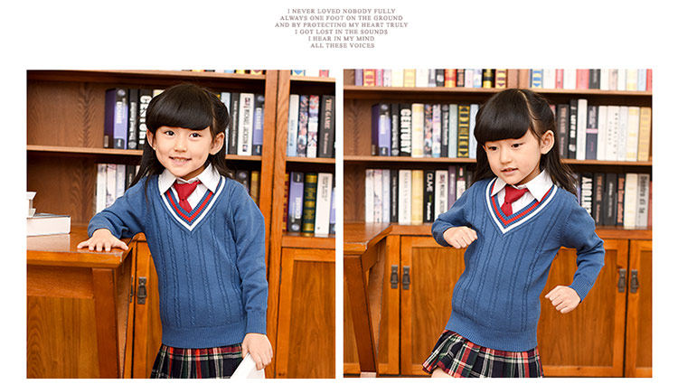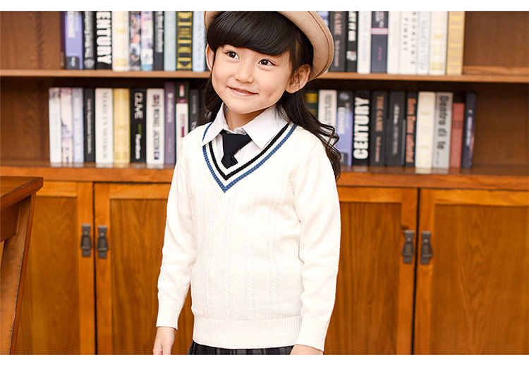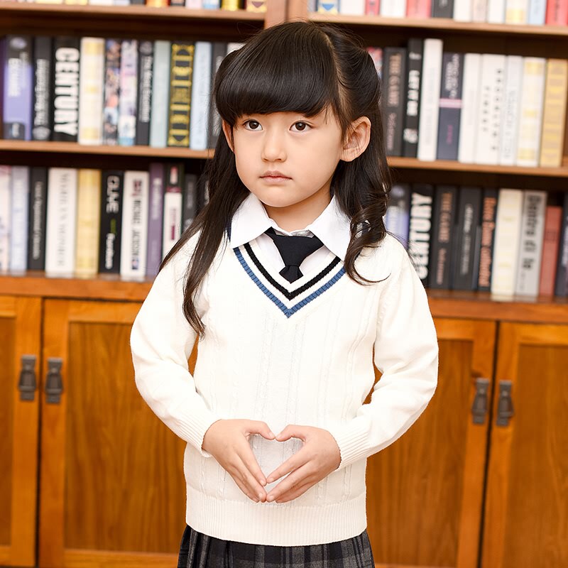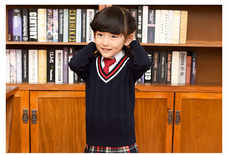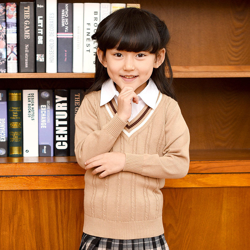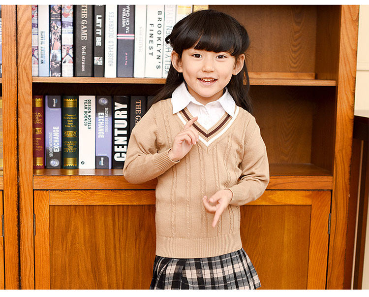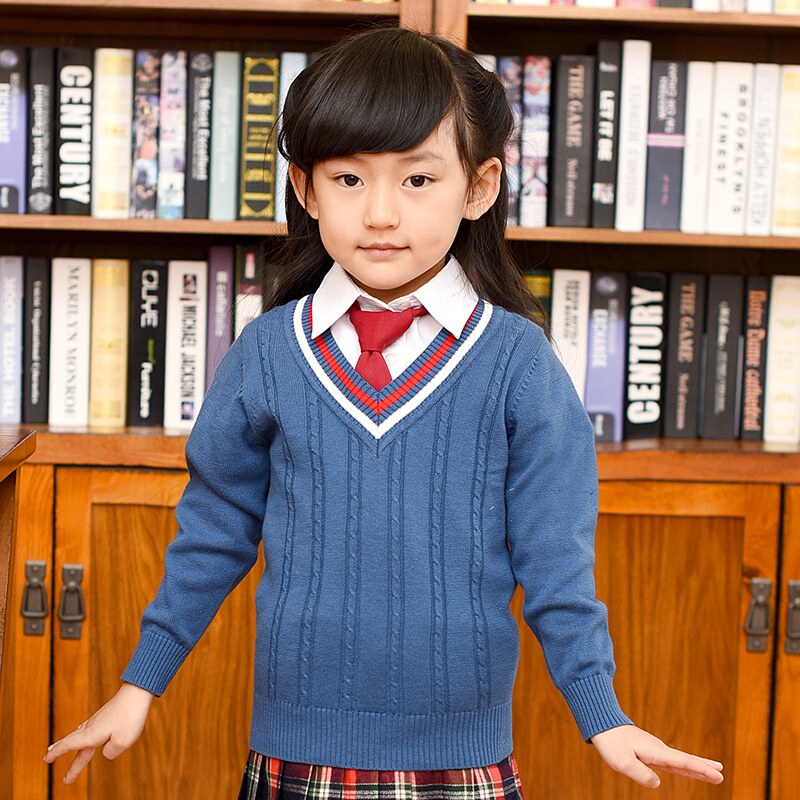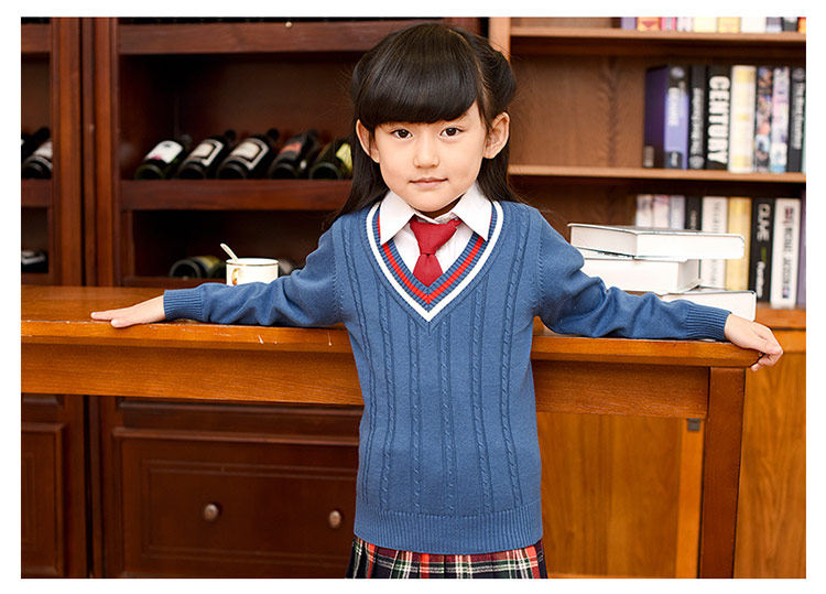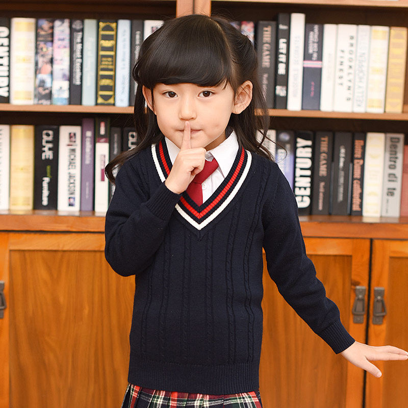 Демисезонная хлопковая трикотажная форма для школьников, базовый приятный телу свитер, V-образный вырез