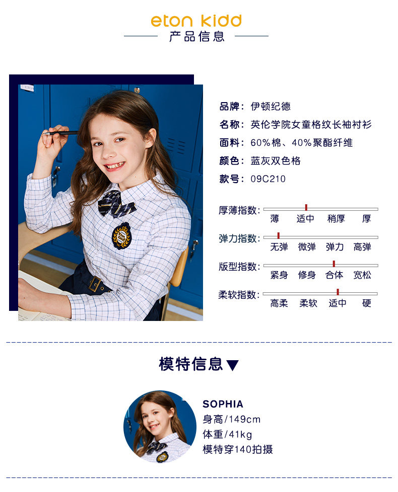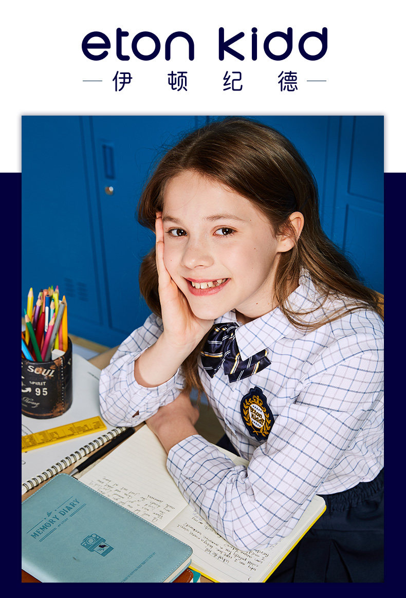 Eaton Jide Spring и осенняя голубая рубашка для роста Girl 09C210
