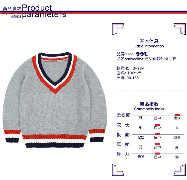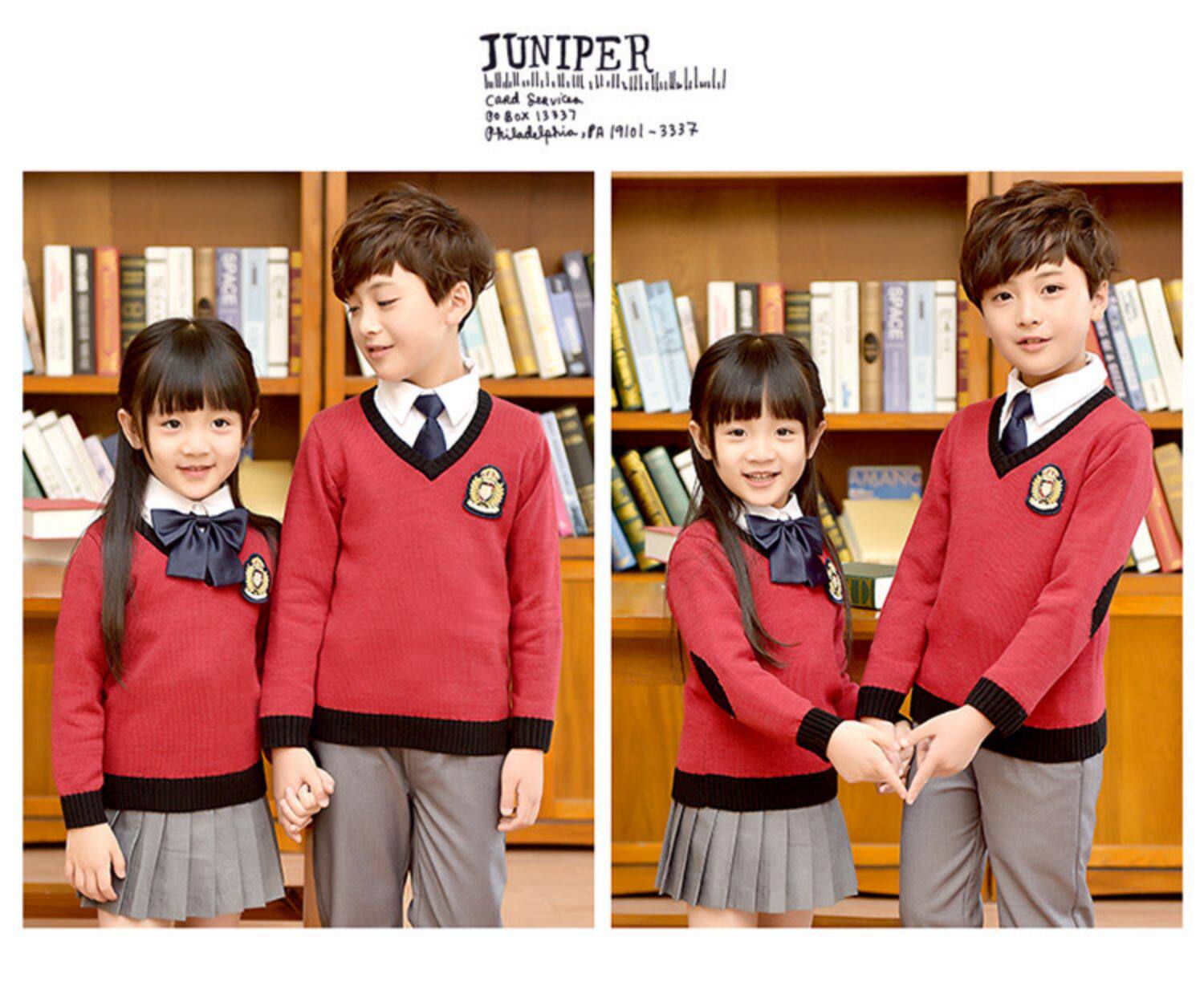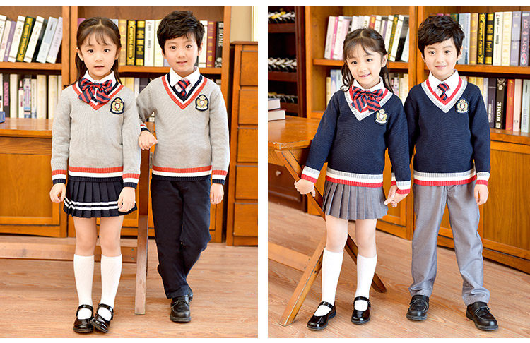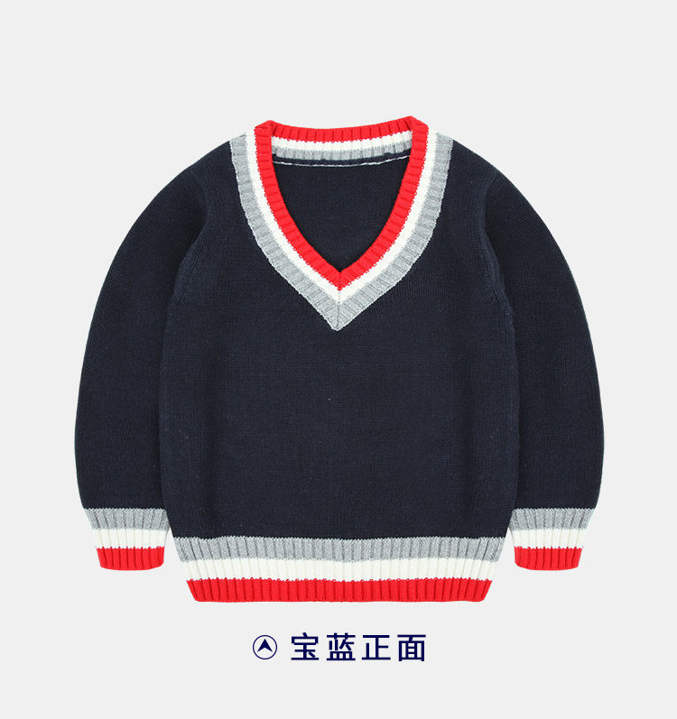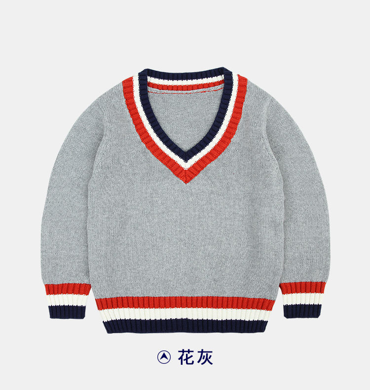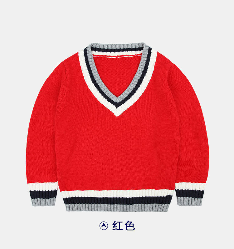 Хлопковая форма для детского сада для школьников, осенний демисезонный лонгслив, свитер для мальчиков, V-образный вырез