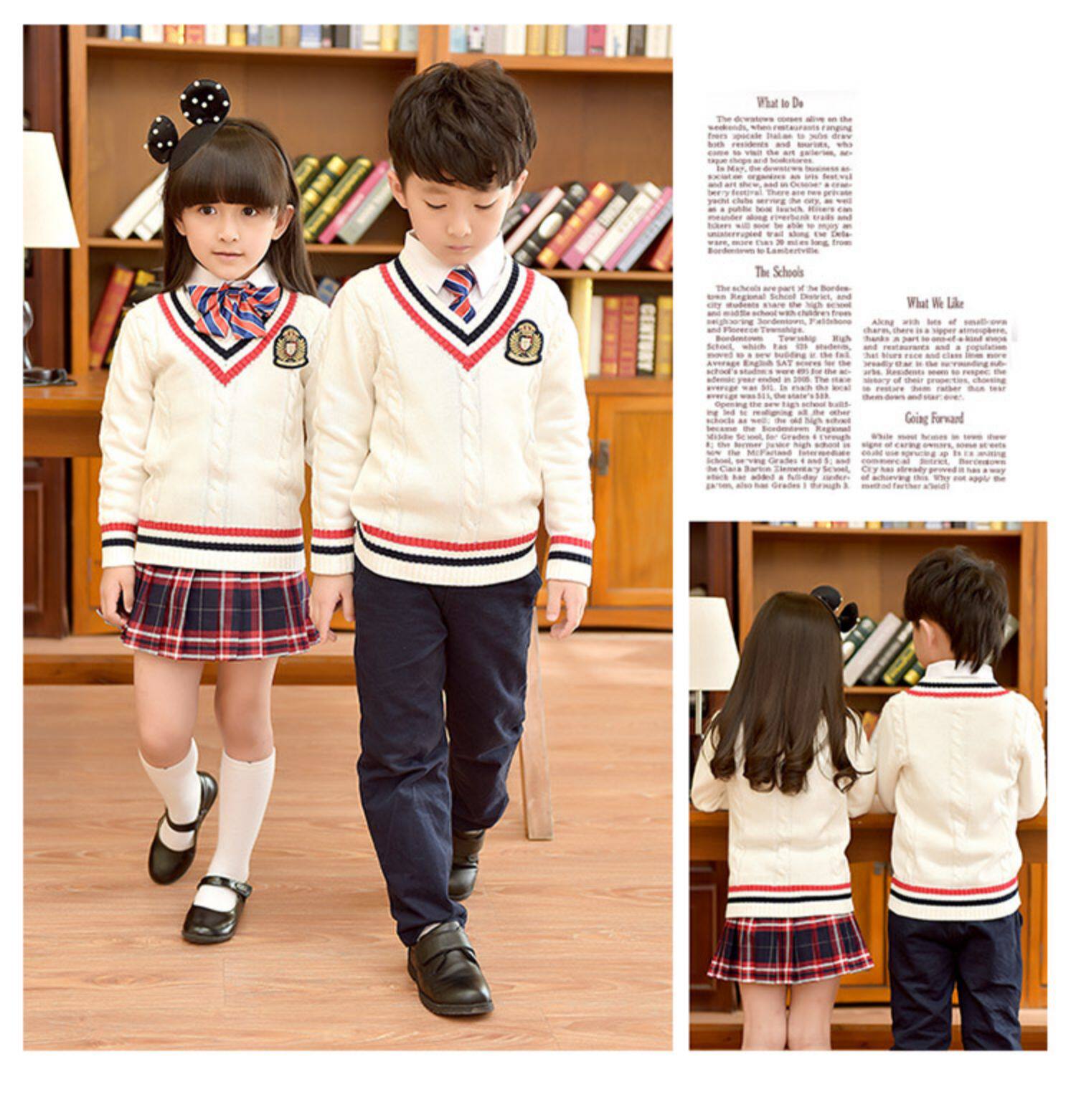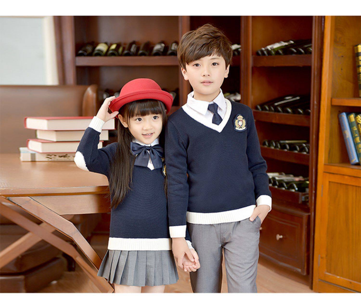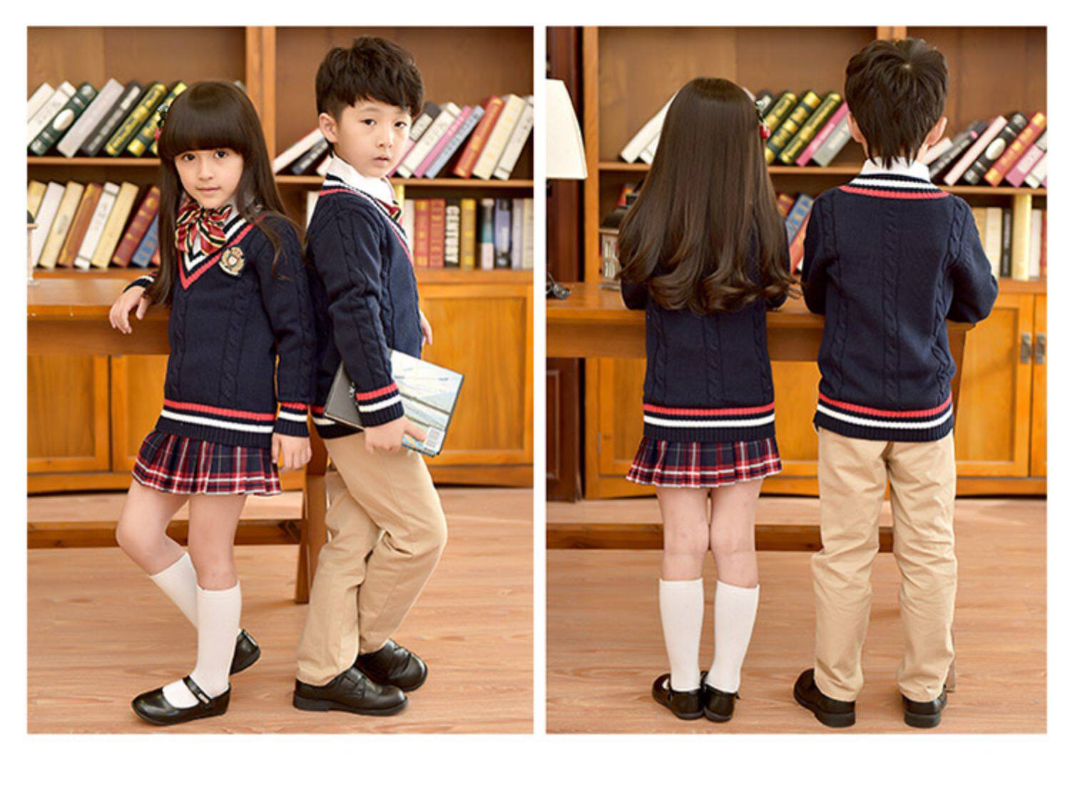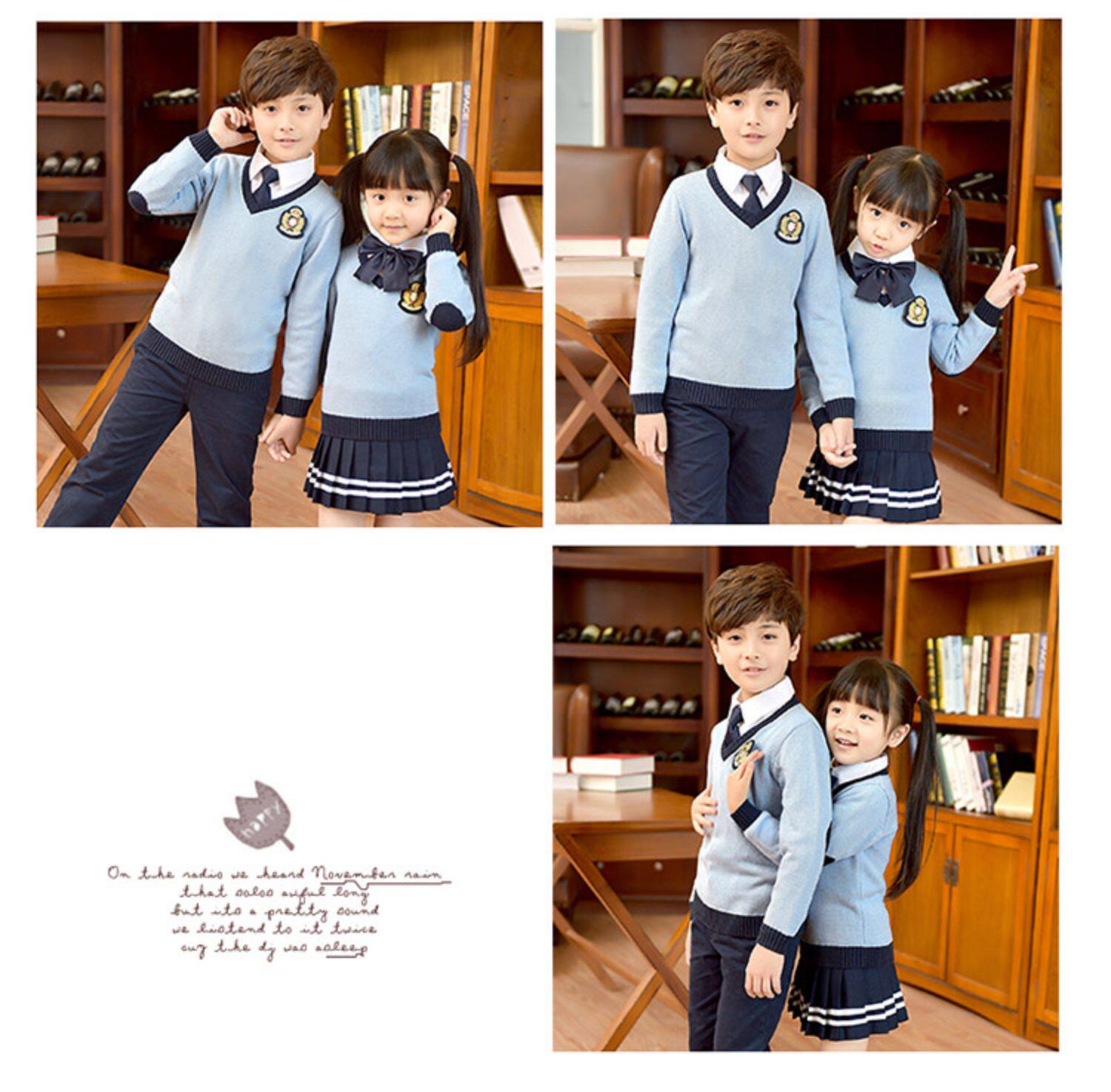 Хлопковая форма для детского сада для школьников, осенний демисезонный лонгслив, свитер для мальчиков, V-образный вырез