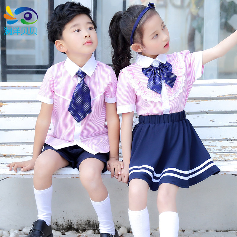 Летняя одежда для детского сада для школьников, форма, детский костюм мальчика цветочника, синяя рубашка, комплект, в британском стиле