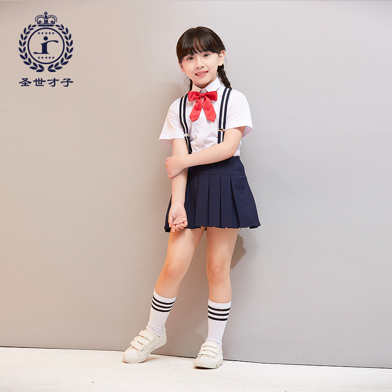 Детская летняя одежда для детского сада, костюм для школьников и студентов, форма, подтяжки, летние нарукавники, комплект, короткий рукав