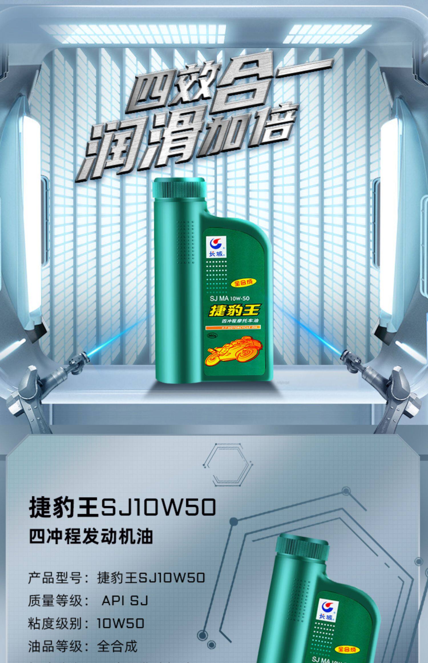 Отличная стена Jaguar King SJ10W50 Four Chuns Полная синтетическая мотоциклетная нефтяная доска четырех баррелей четырех сезонов