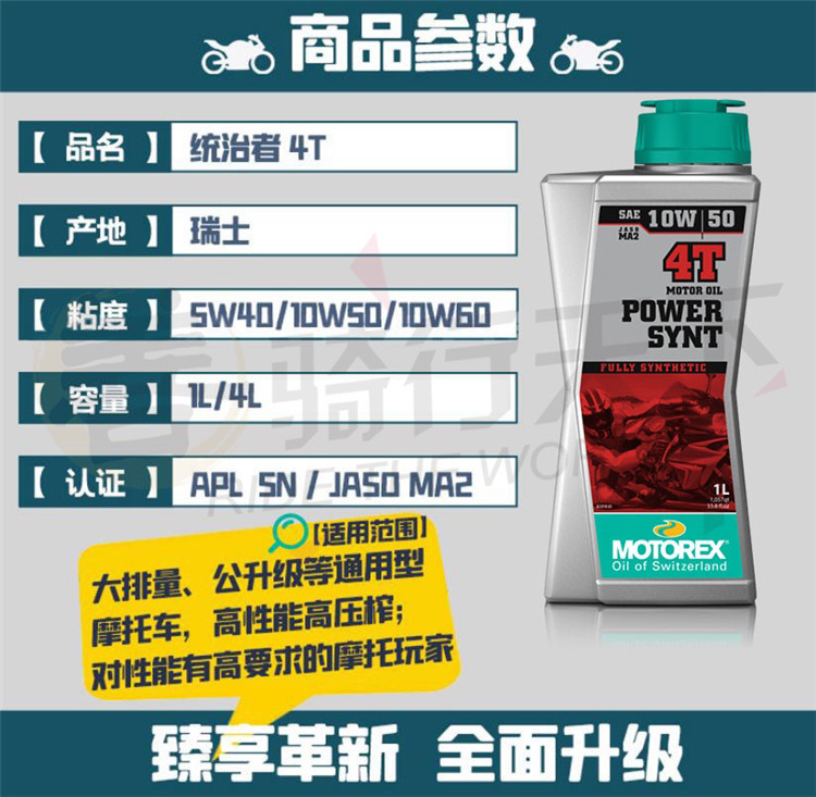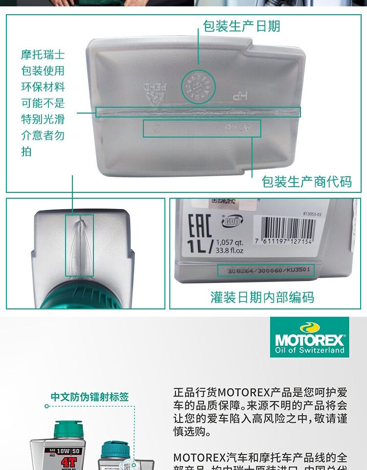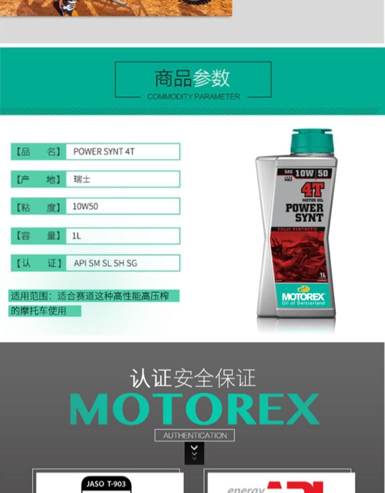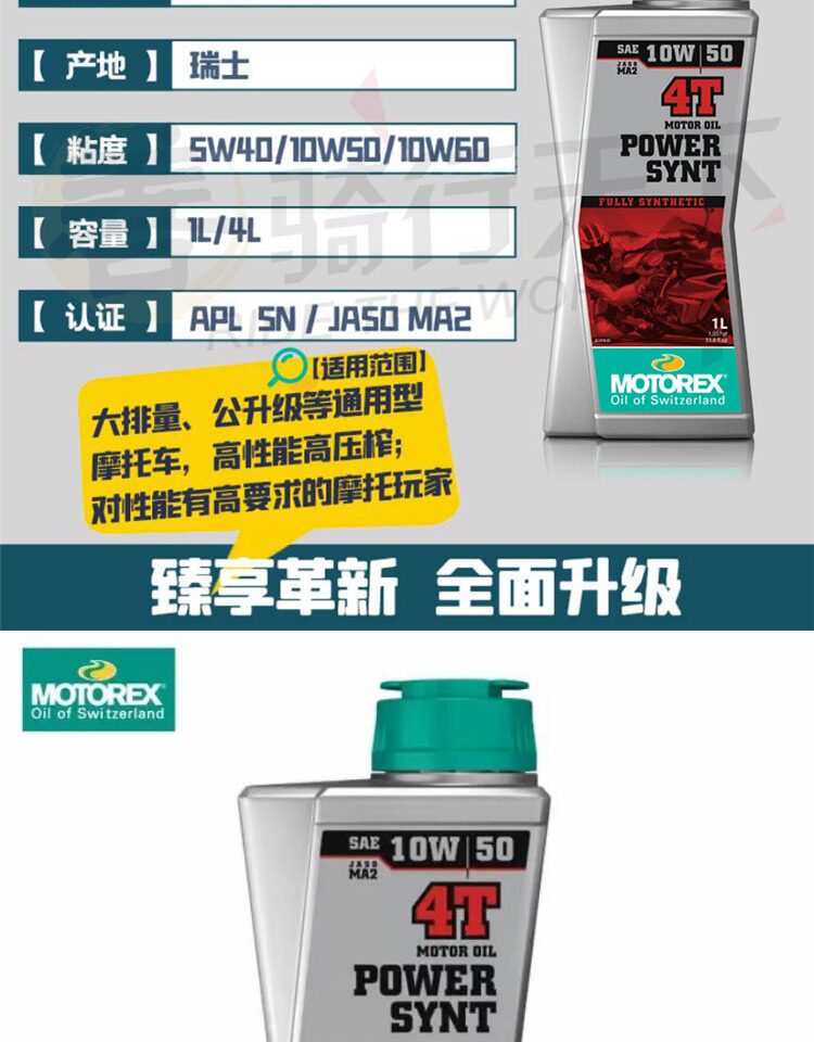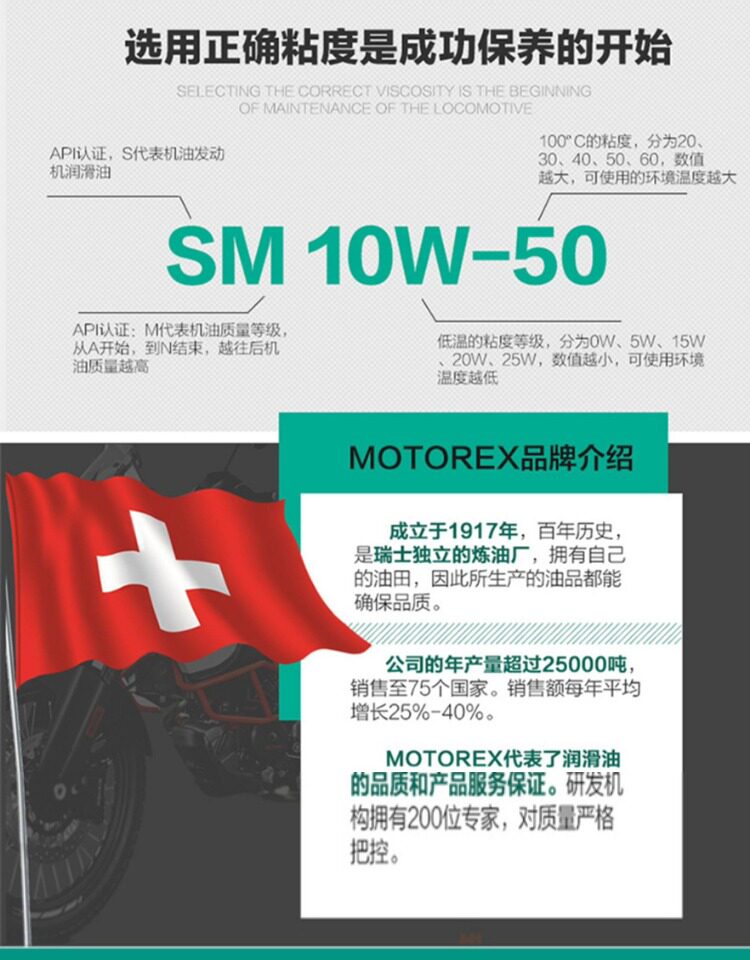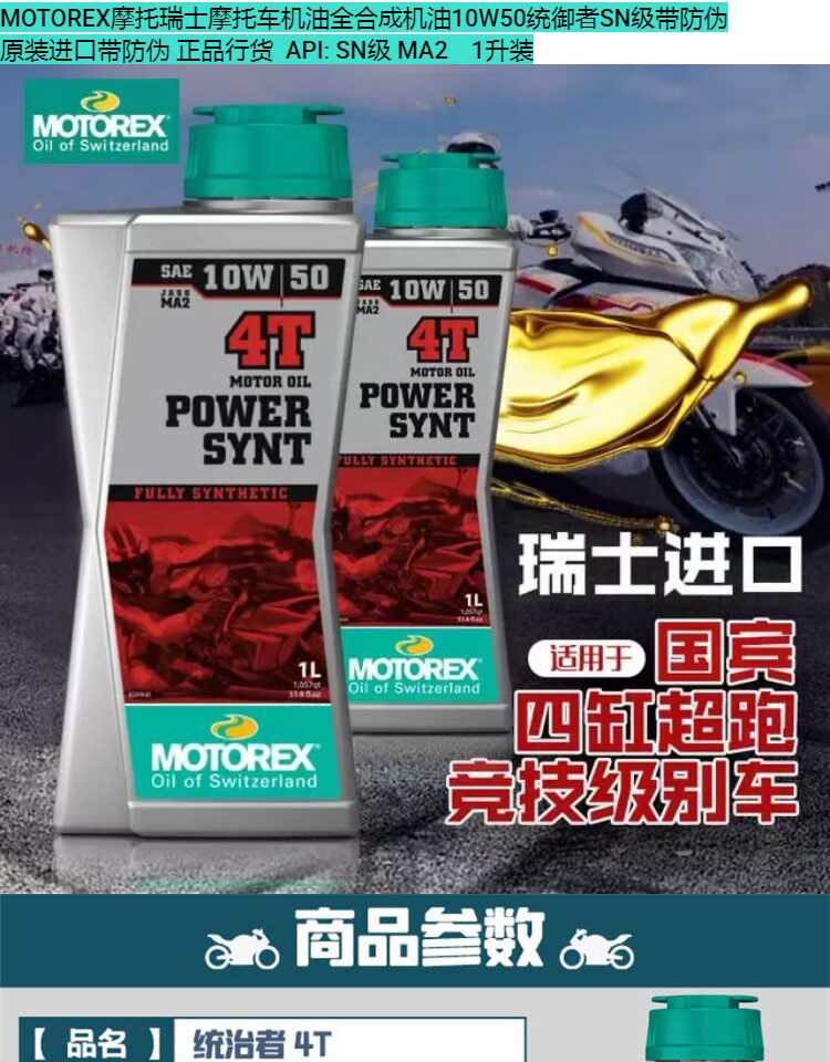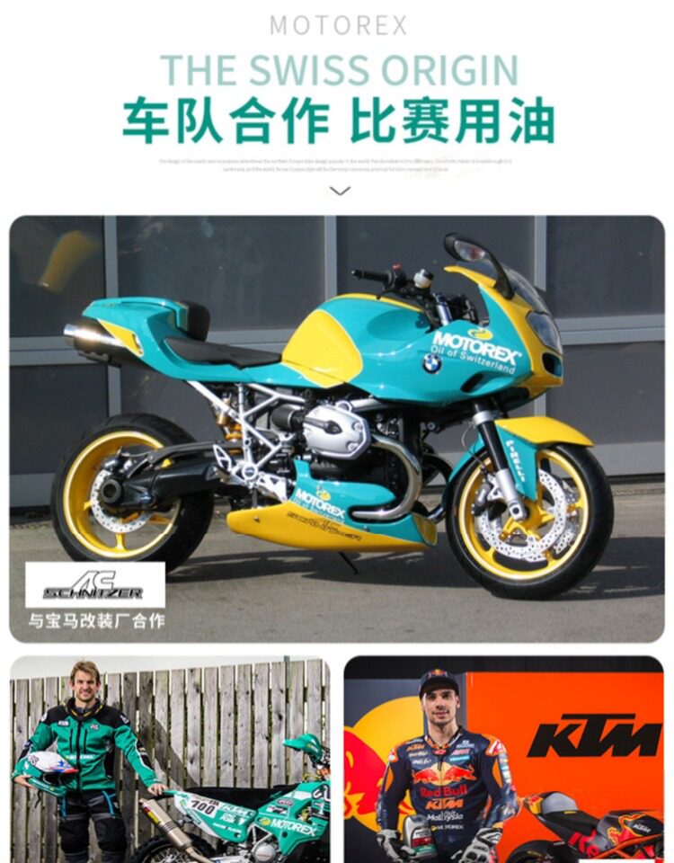Бесплатная доставка Motorex Мотоцикле Швейцарский мотоцикл Мотоцикл Моторный масло Полное синтетическое моторное масло 10W50 Класс SN с анти -сочетанием