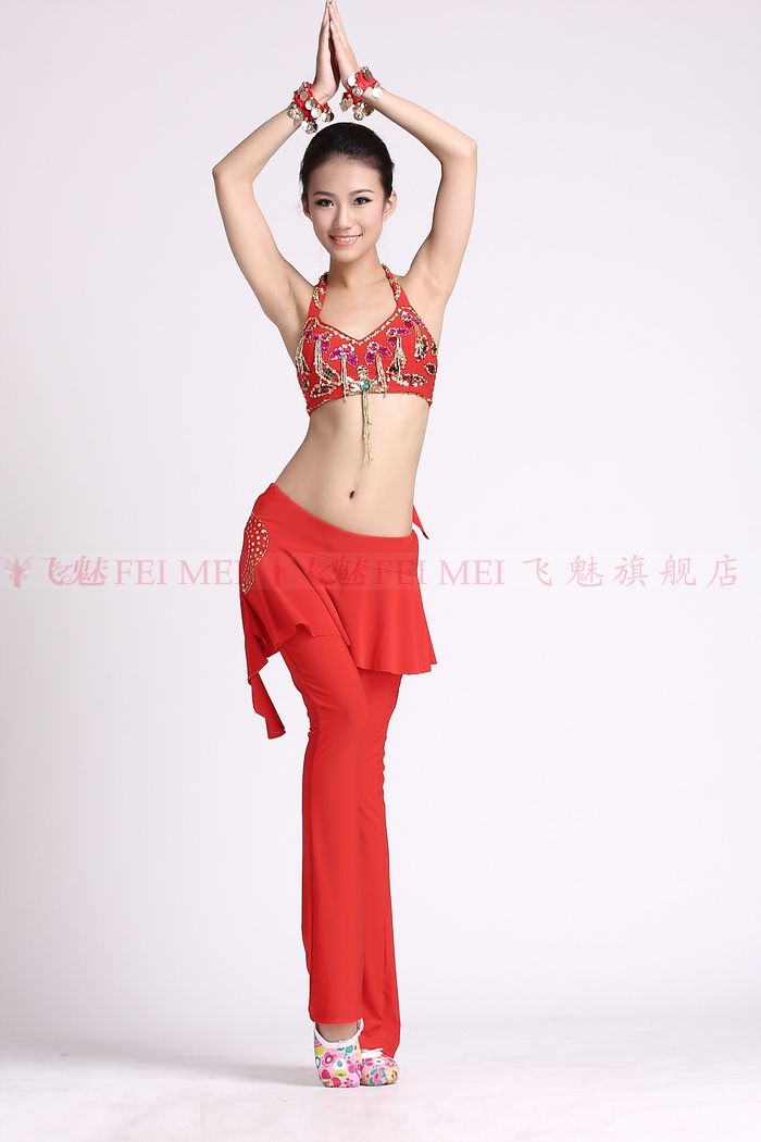 飞魅 Упражнения для танцев живота 2022 Новый набор танцевальной одежды для живота 704 Топ вышивка из бусинки +03