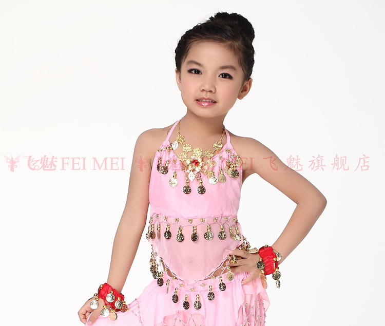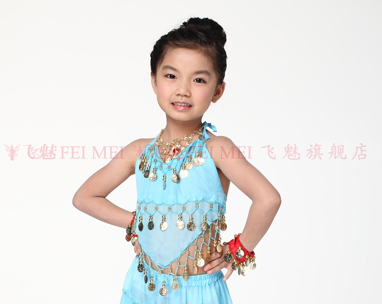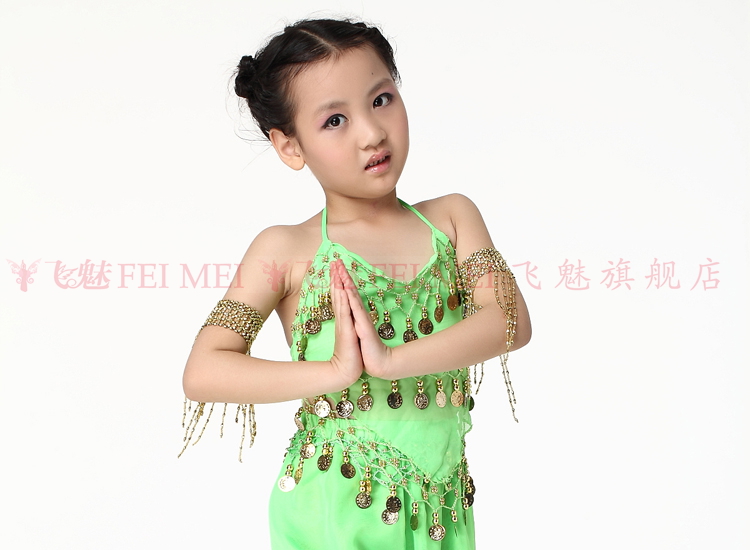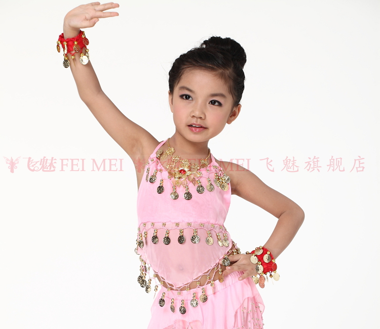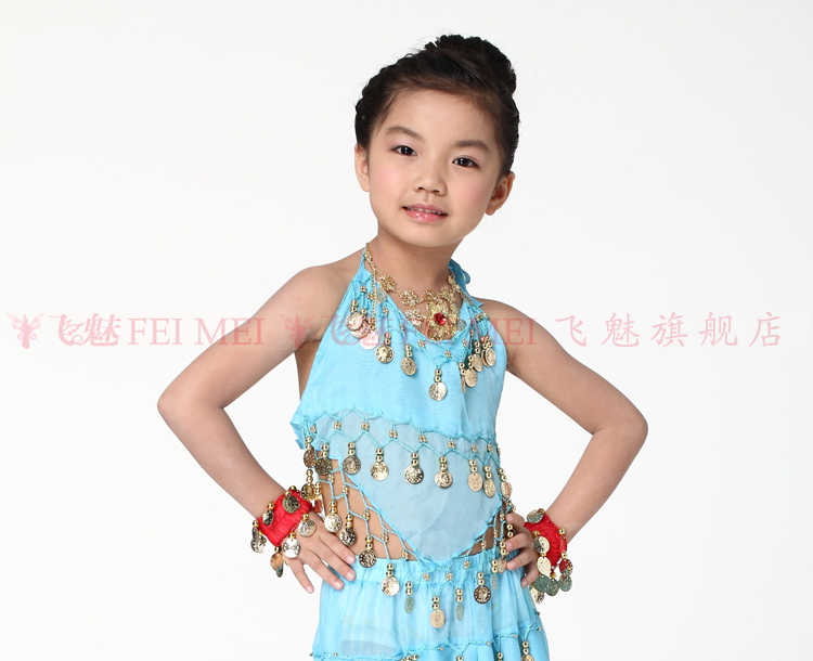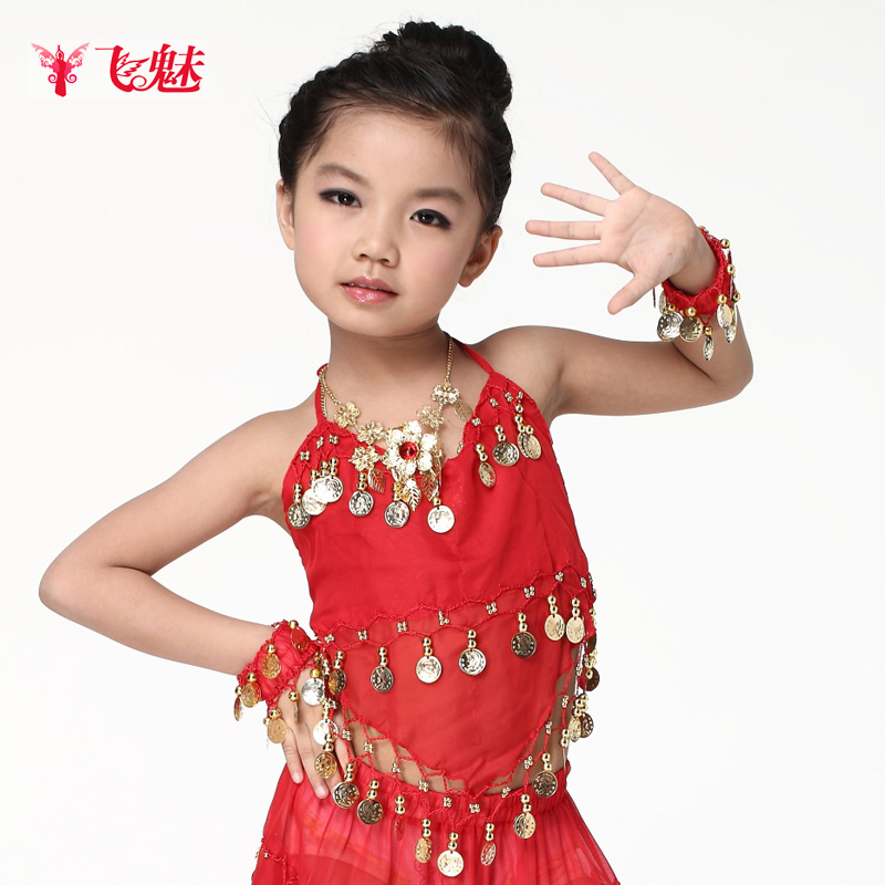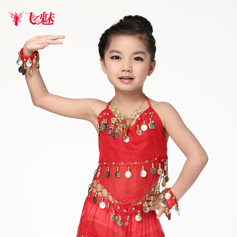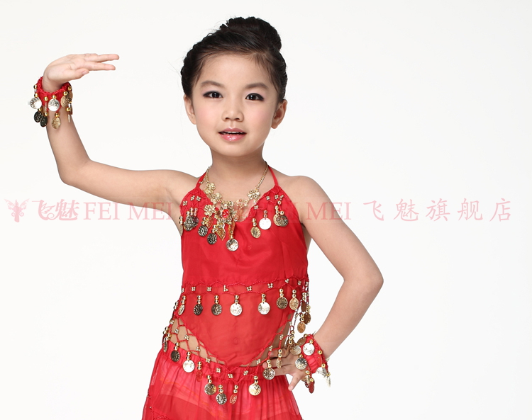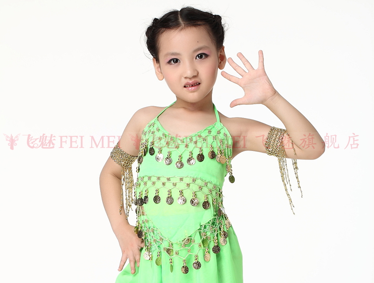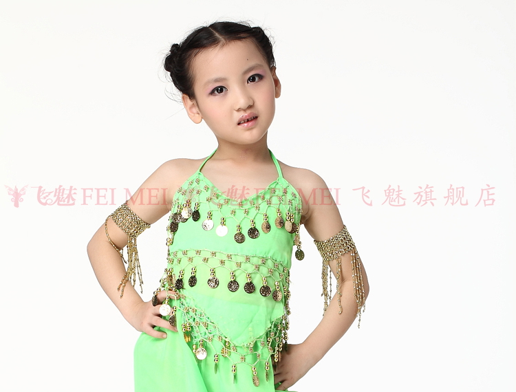 飞魅 Новая одежда для детского танца живота, танцевальная топ с животом с полосой Belly Band, шифоновая висящая монетная топ