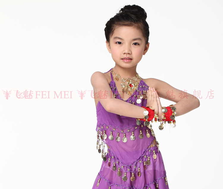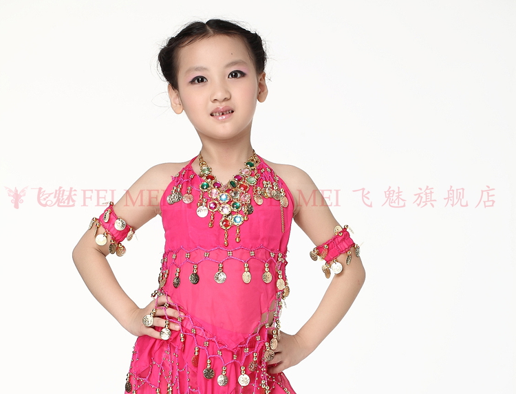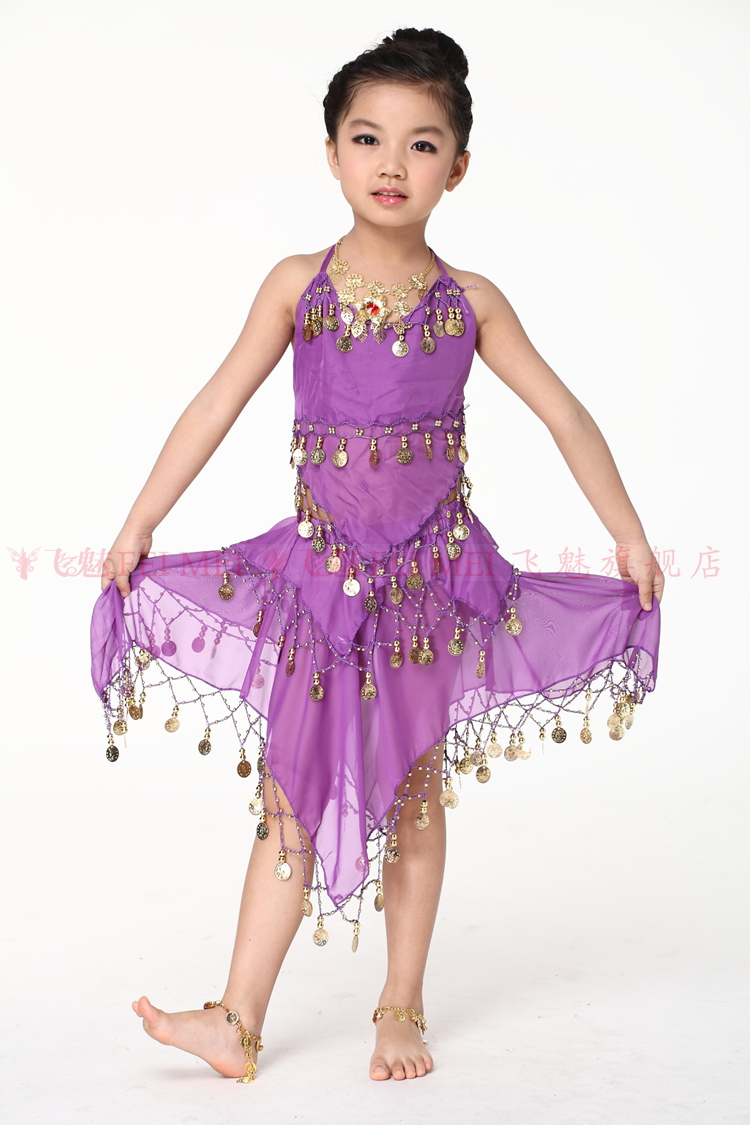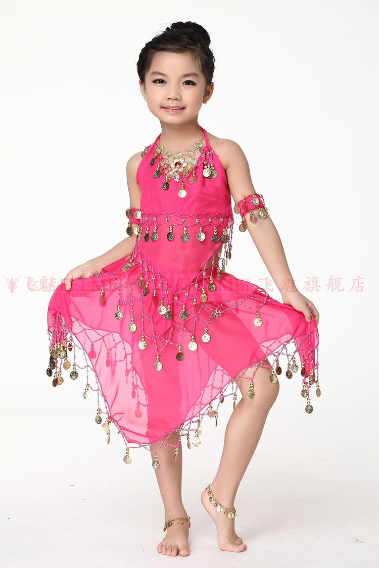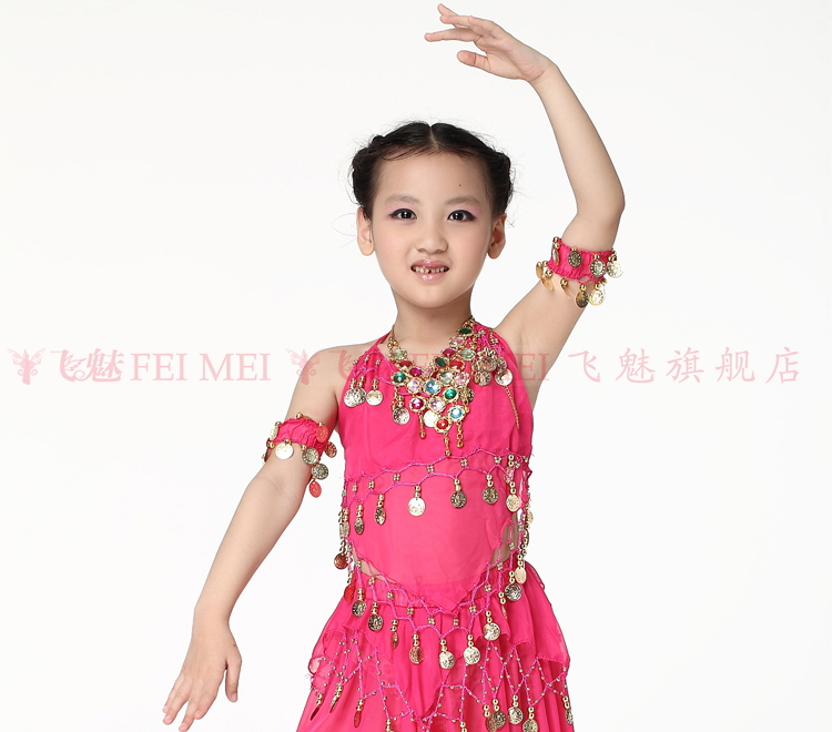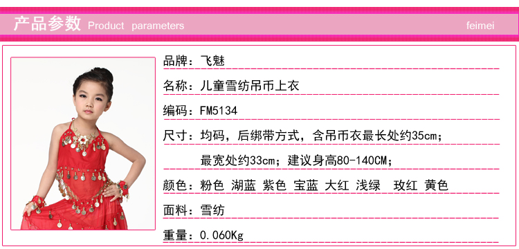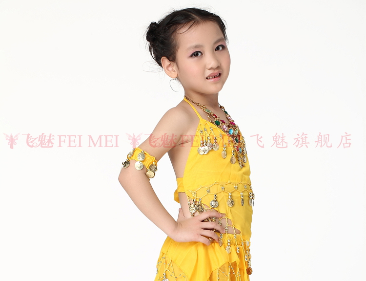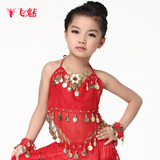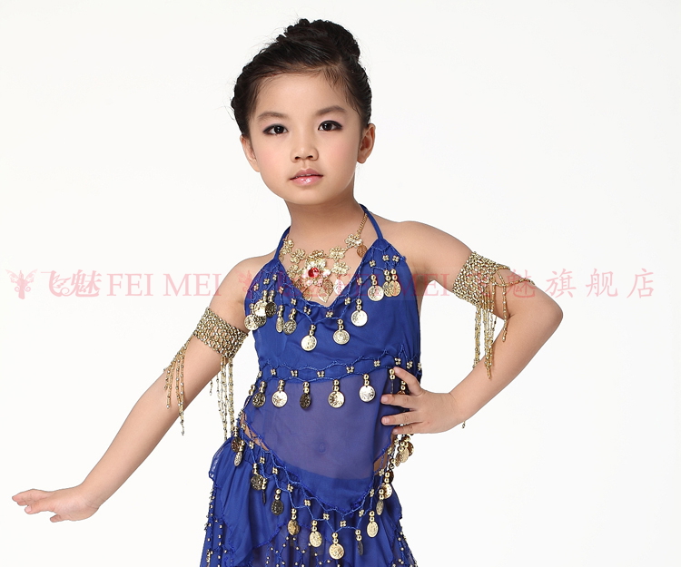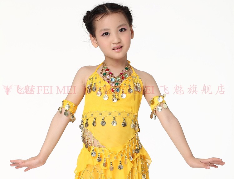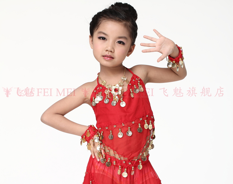 飞魅 Новая одежда для детского танца живота, танцевальная топ с животом с полосой Belly Band, шифоновая висящая монетная топ